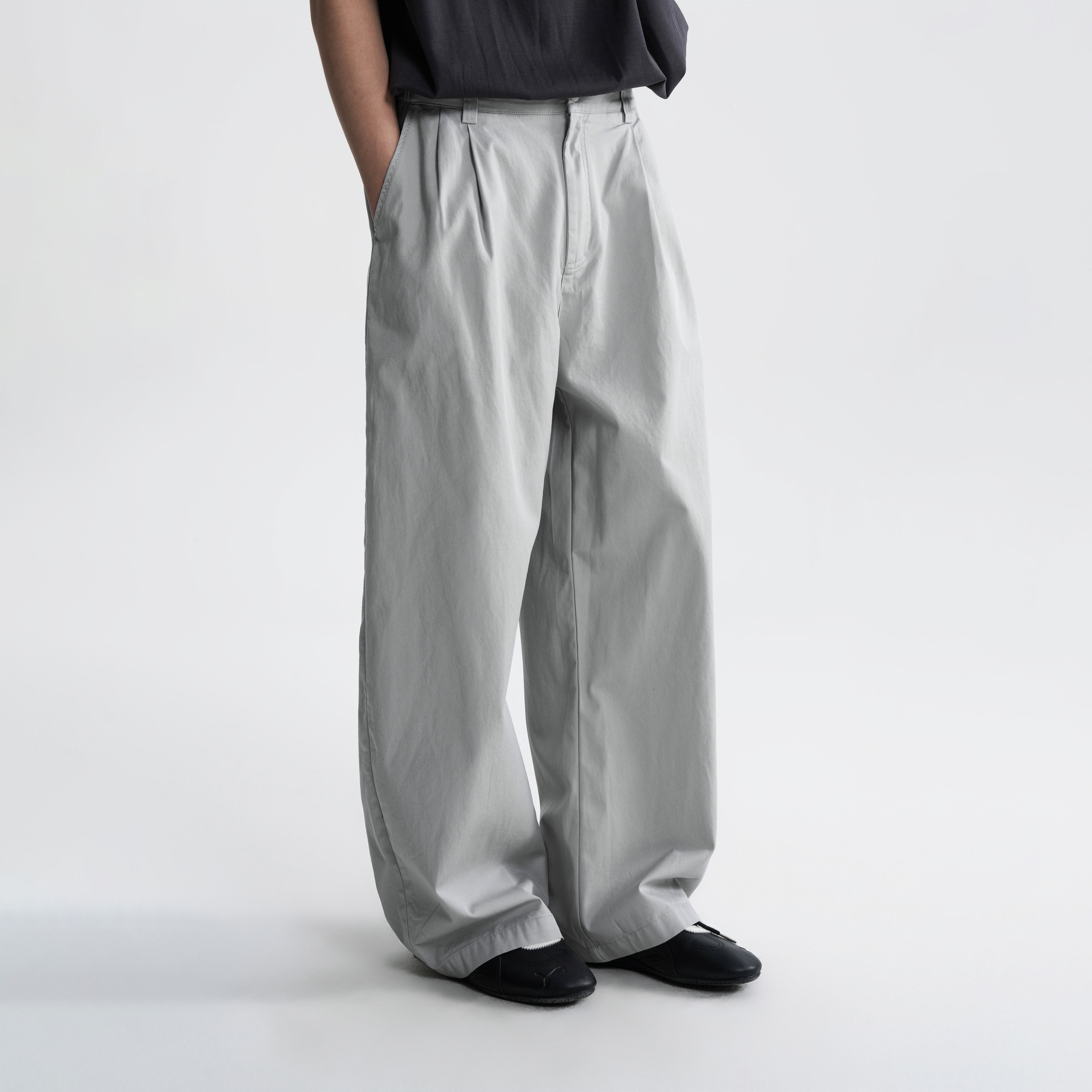 AWT 26SS 〔线迹装饰〕简约米粒绣口袋纯棉微弯刀休闲长裤