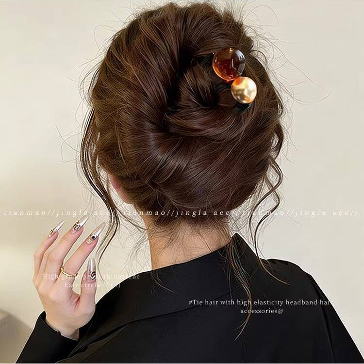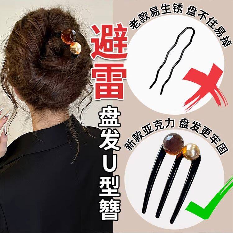 丸子头盘发神器u型发簪女2026新款高端后脑勺盘发夹插梳发卡头饰