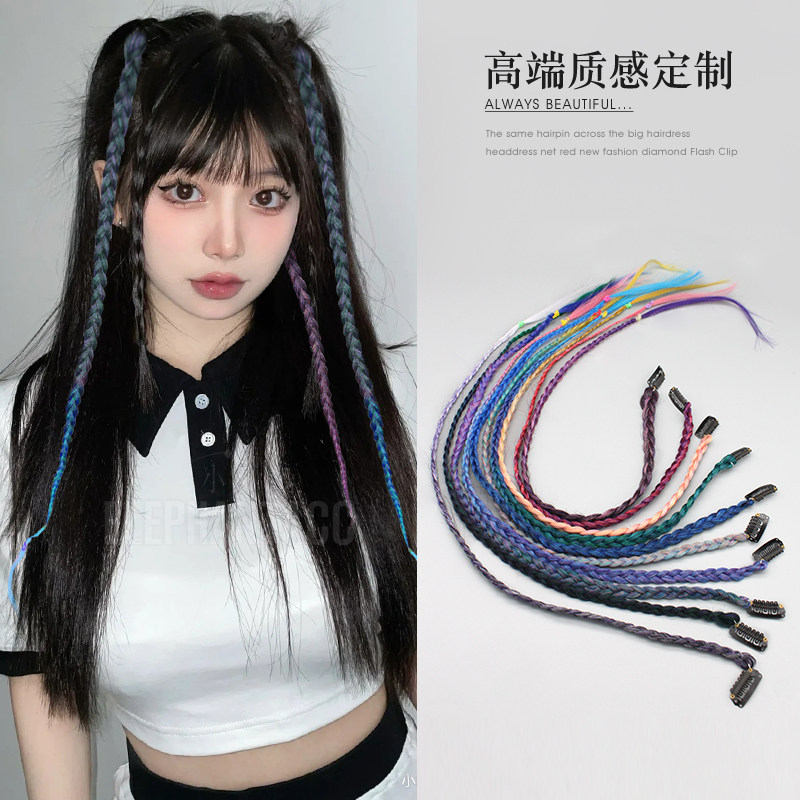 辣妹Y2K发型麻花辫假发发夹渐变彩色辫子成品夹子爵士舞脏辫头饰