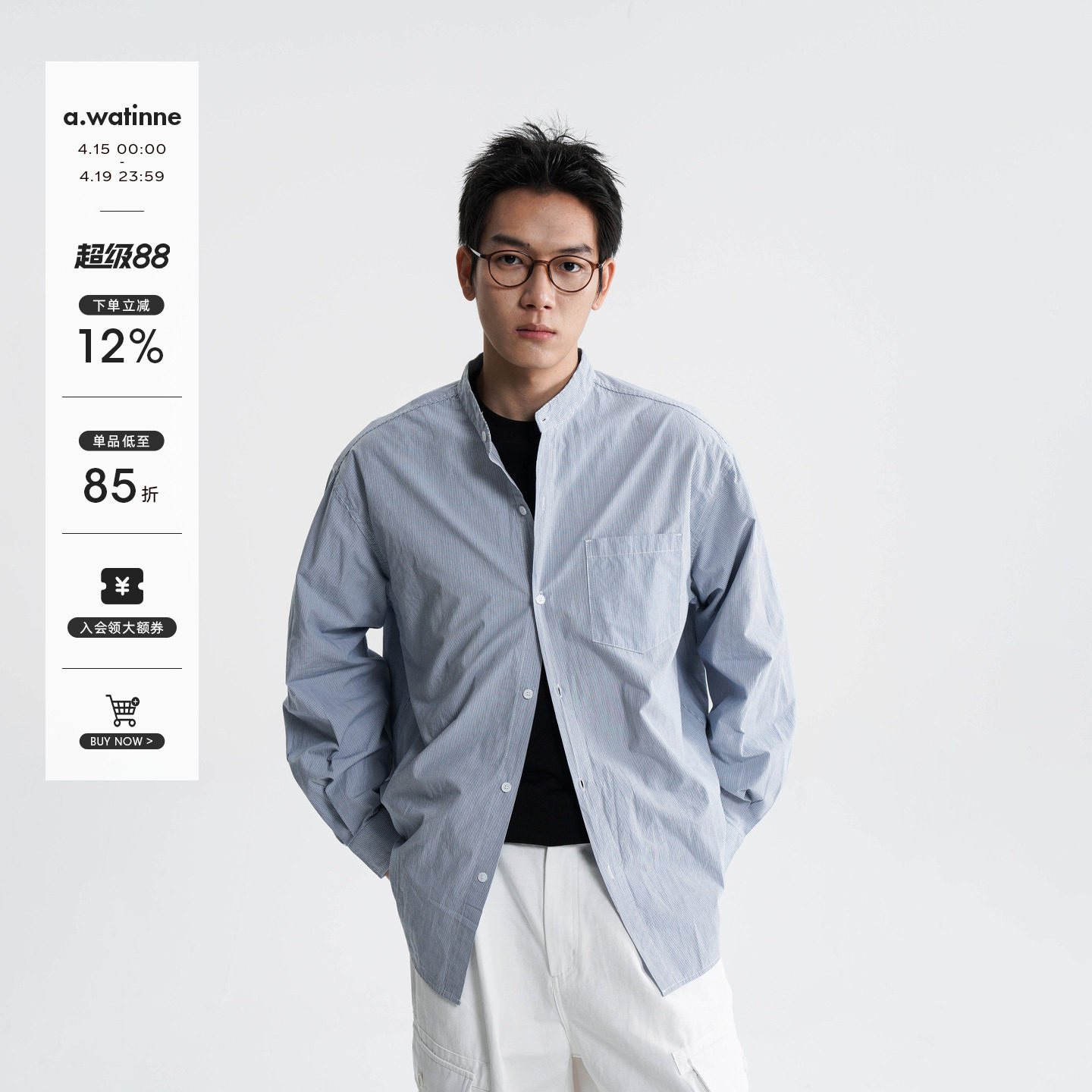 AWT 26SS 〔紧密细条纹〕简约休闲条纹立领长袖衬衫