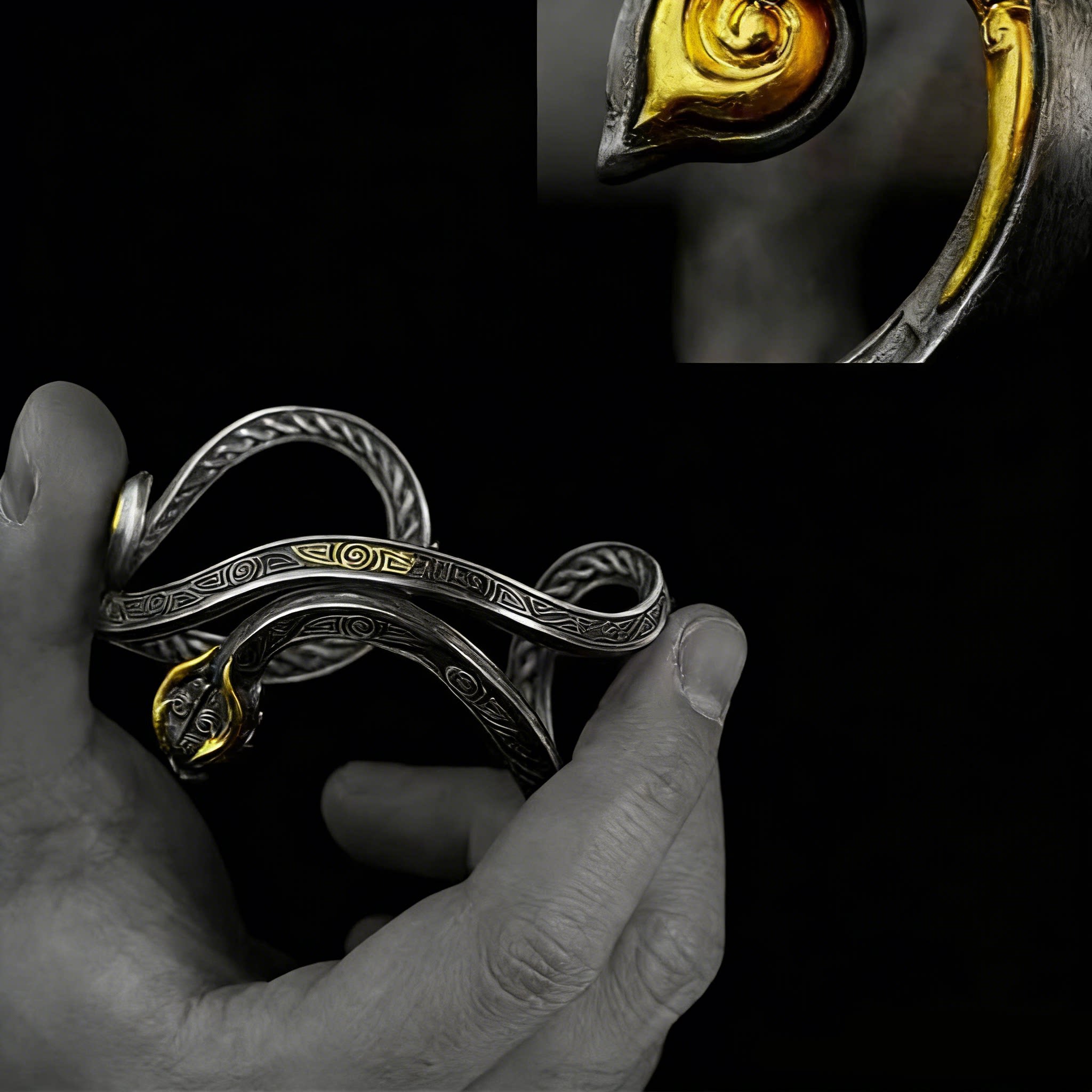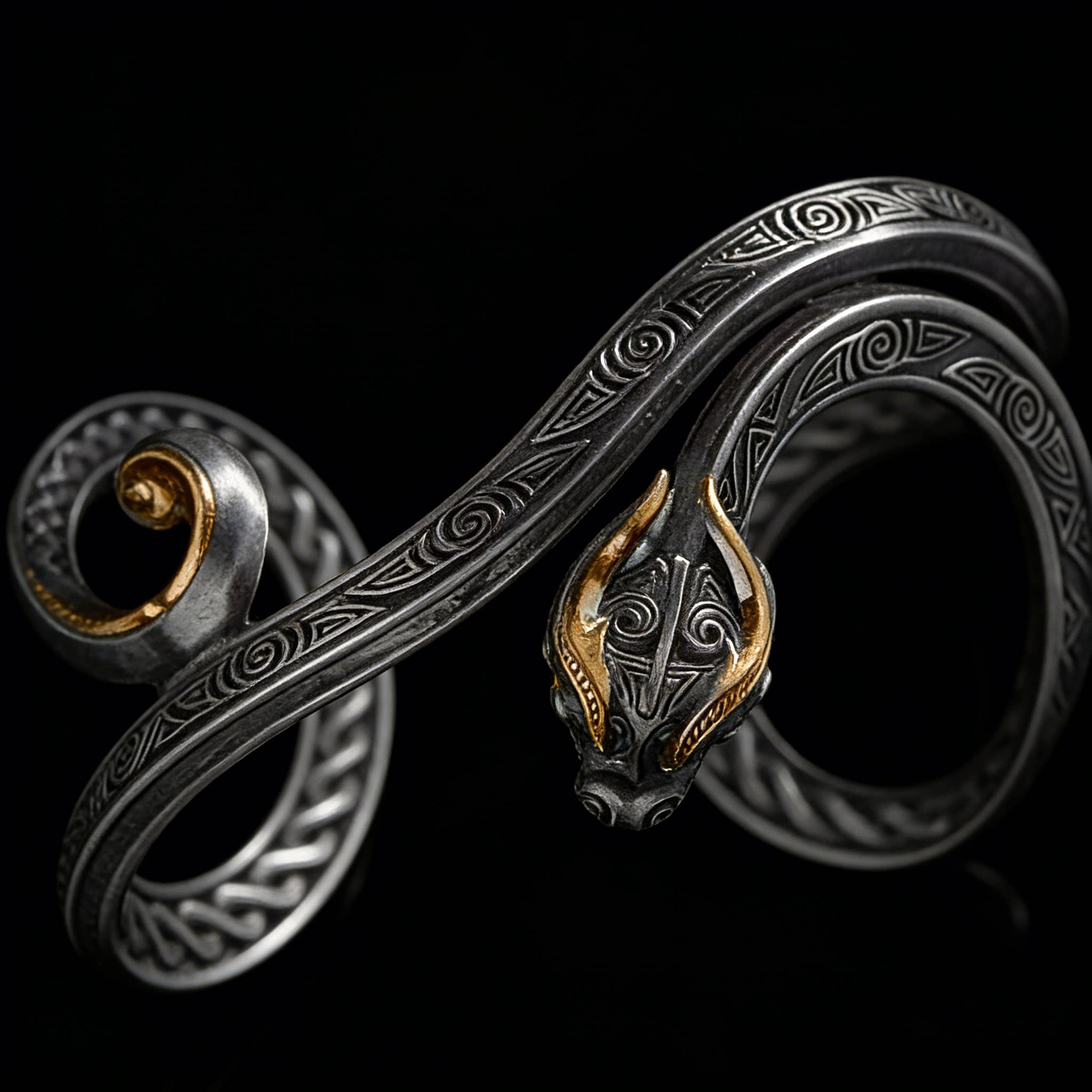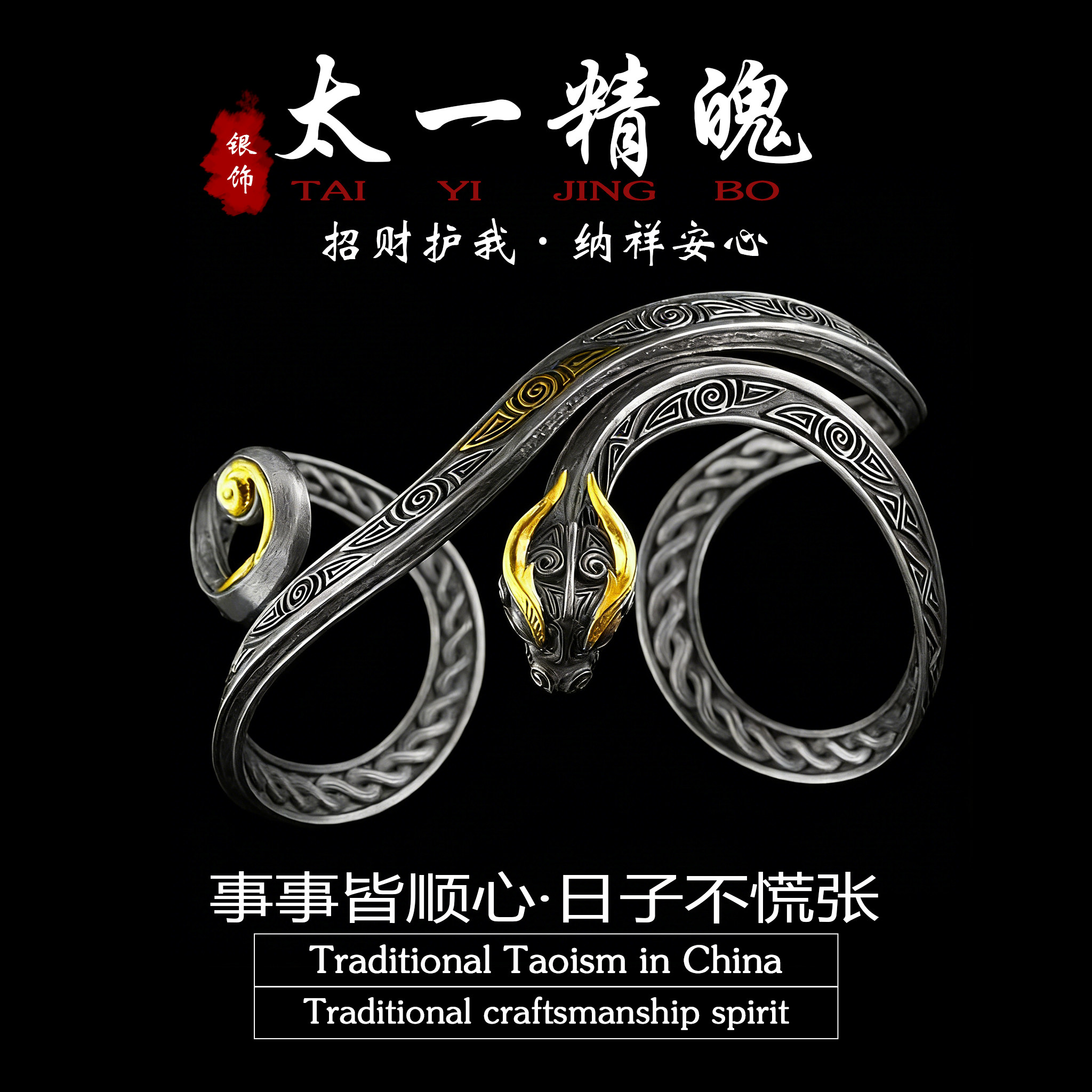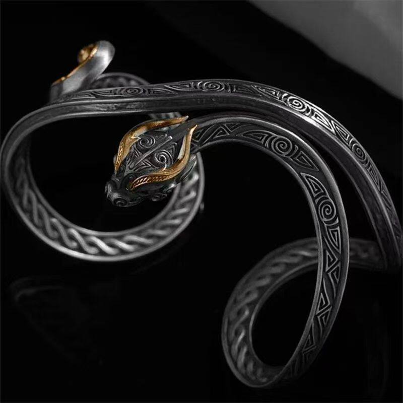 「道系」太一精魄蟠虺升龙登阶博山手镯复古做旧手工开口手环饰品