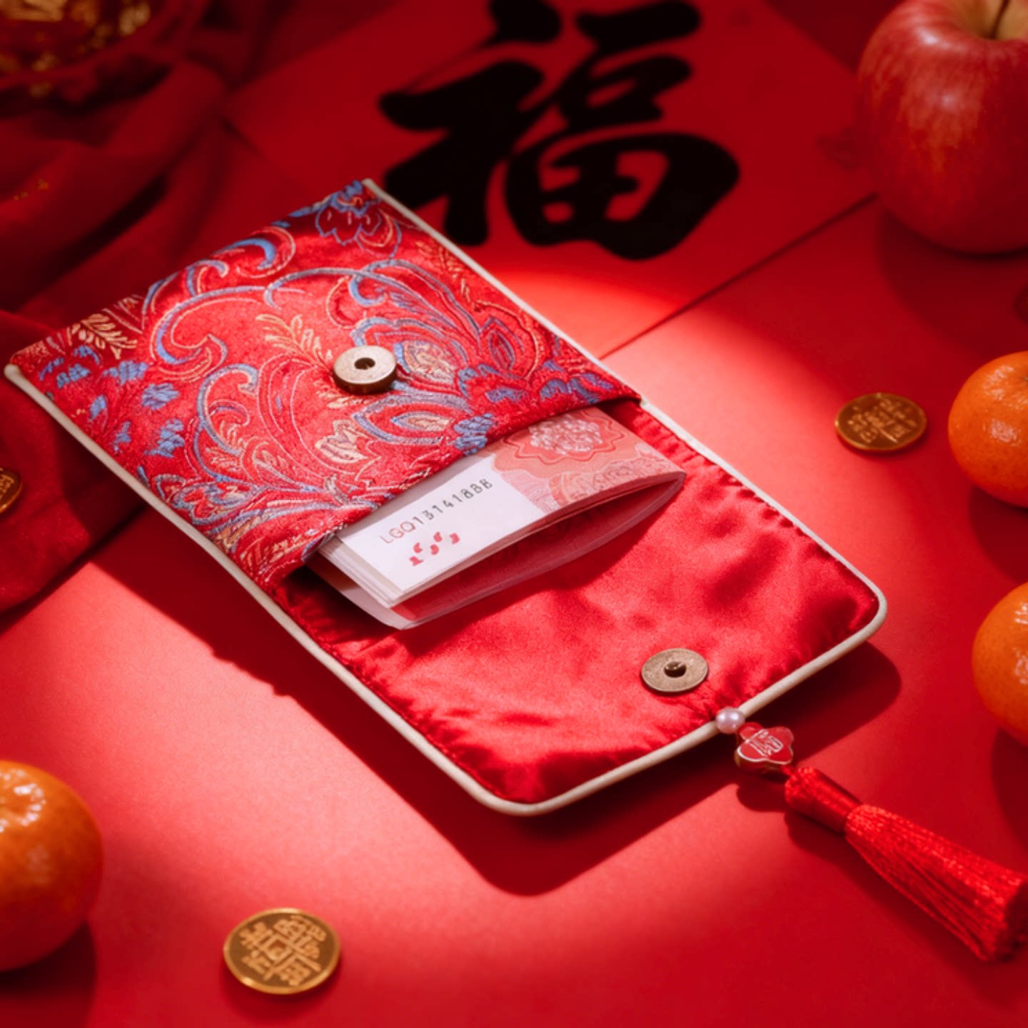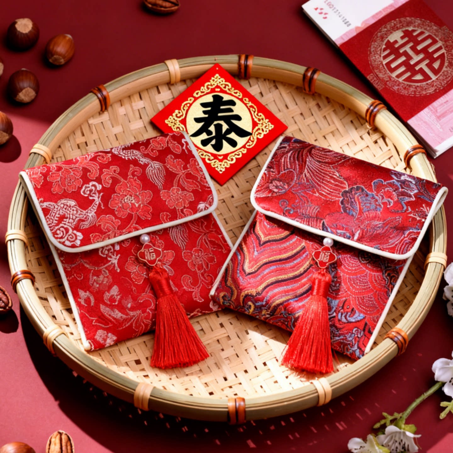 国潮红色织锦提花首饰袋流苏装饰高级感收纳袋锦囊喜钱喜糖福袋