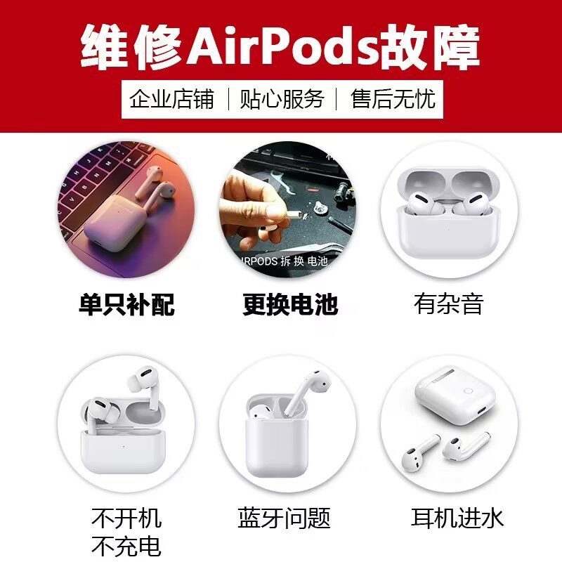 苹果耳机专业维修 修不开机 单边不响 连接不上 配置更换