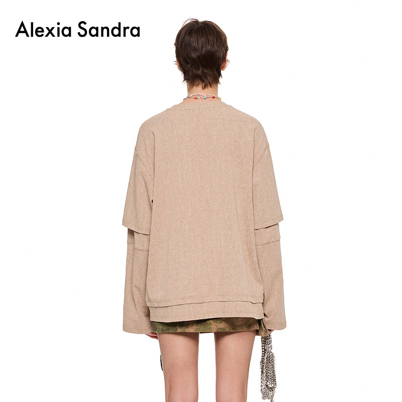 丁程鑫戴萌同款Alexia Sandra海洋涂鸦假两件休闲T恤长袖高级感