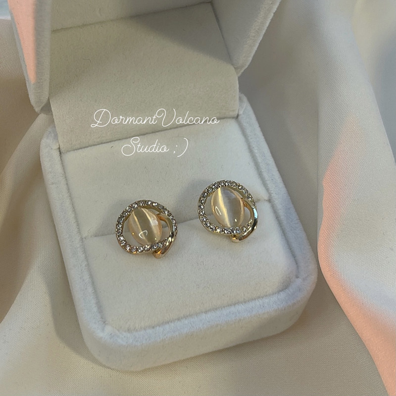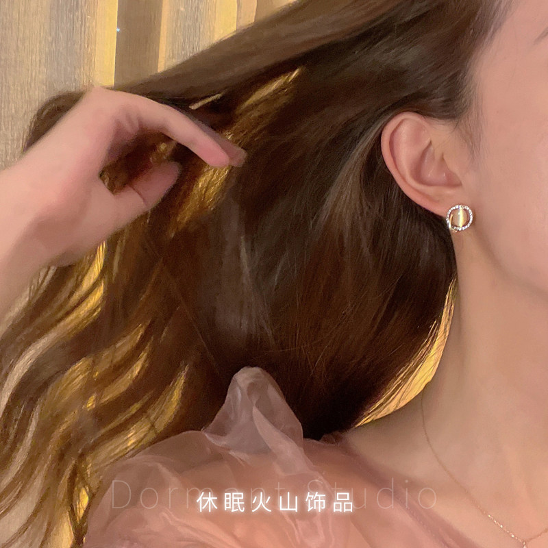 休眠火山◆回眸 猫眼石复古耳钉耳环小众设计感高级新款耳饰耳夹
