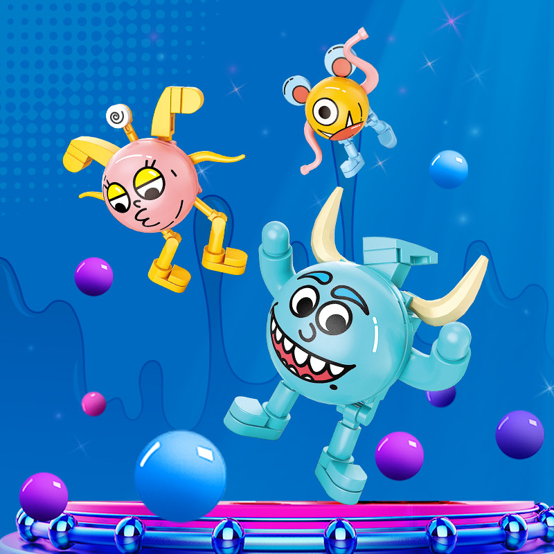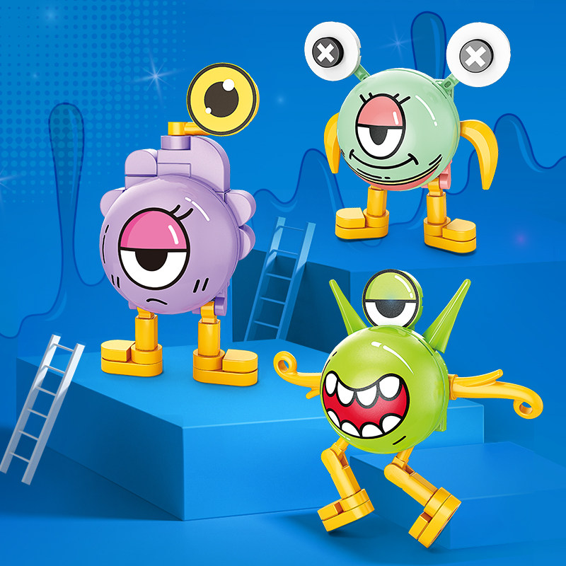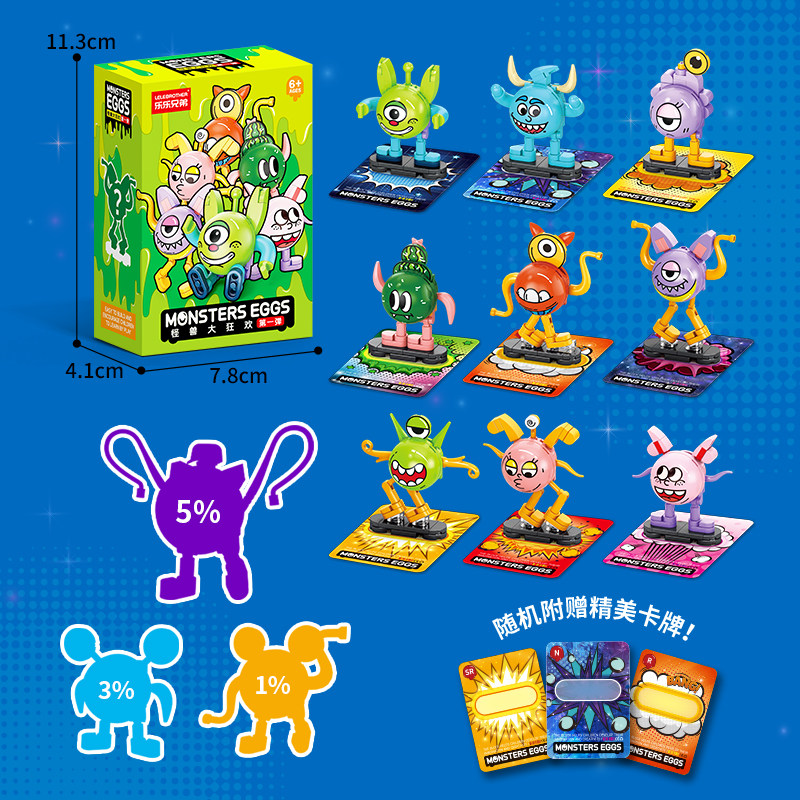 乐乐兄弟萌蛋怪兽盲盒积木儿童益智拼装模型男孩公仔玩具拼图礼物