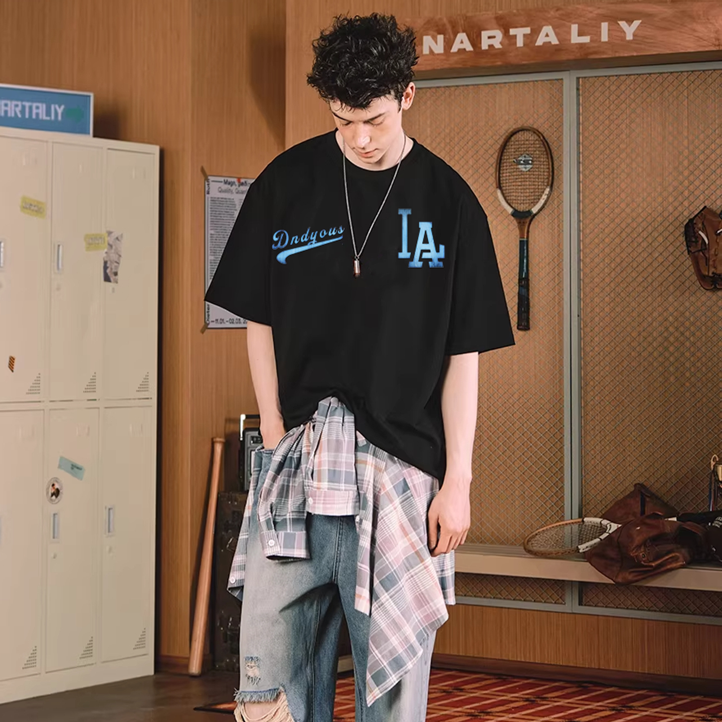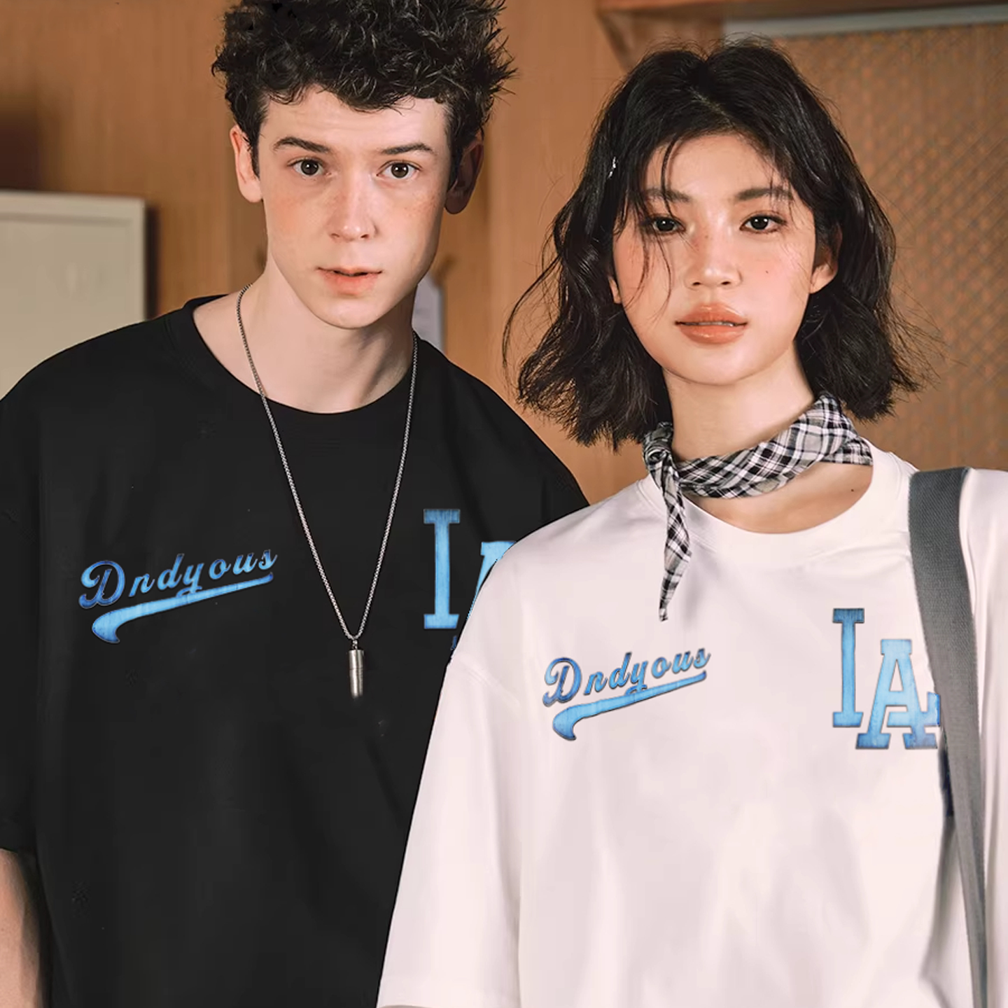LA正品2026新款春夏男女同款纯棉宽松潮牌休闲T恤