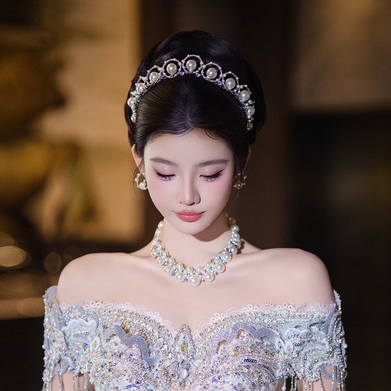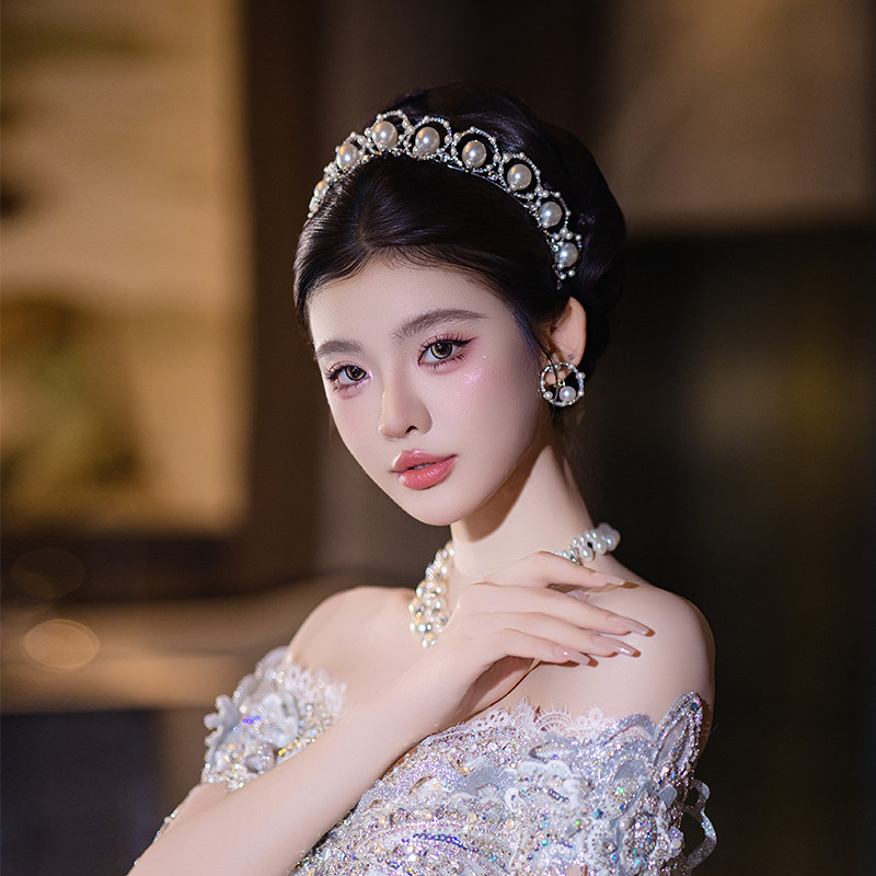 新娘轻奢手工珍珠皇冠超仙小众法式减龄公主婚礼生日婚纱礼服王冠