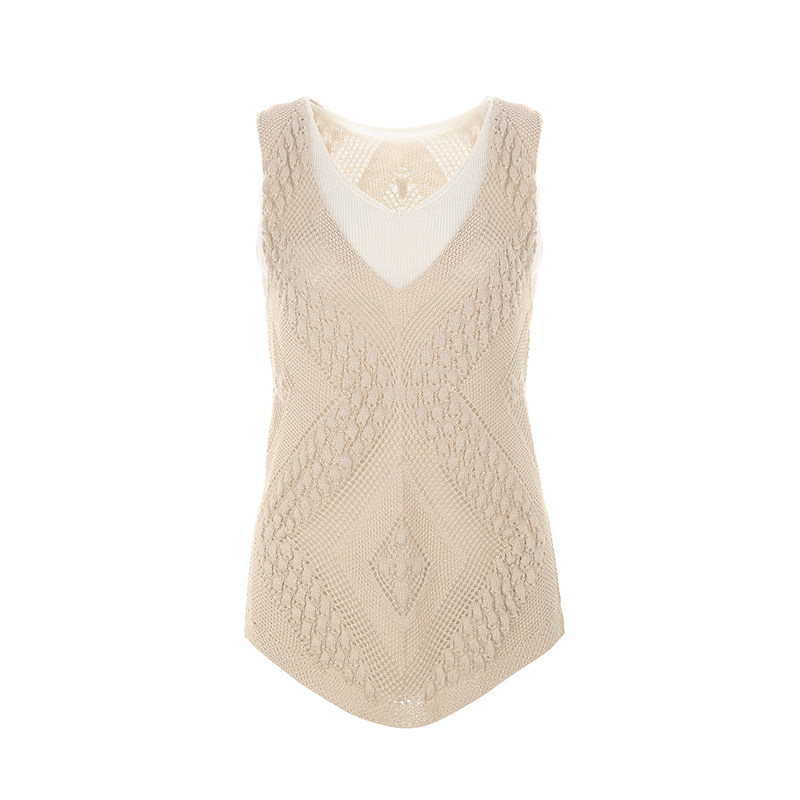 wana try钩针假两件背心春夏季新品百搭浅卡其时髦休闲韩系上衣女