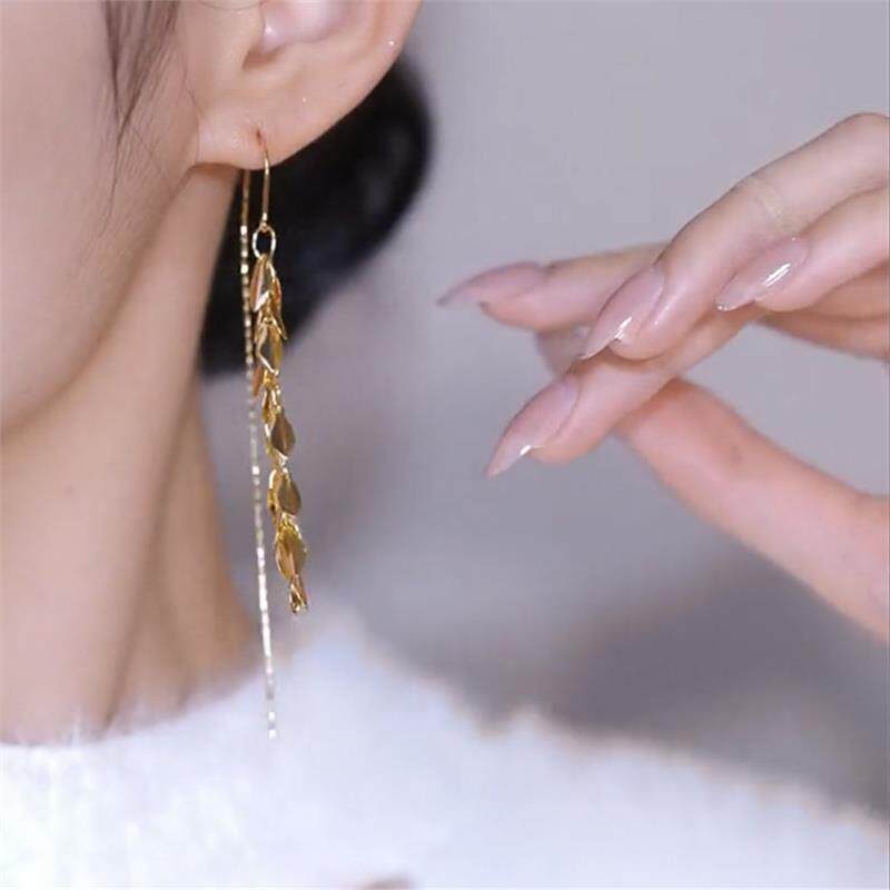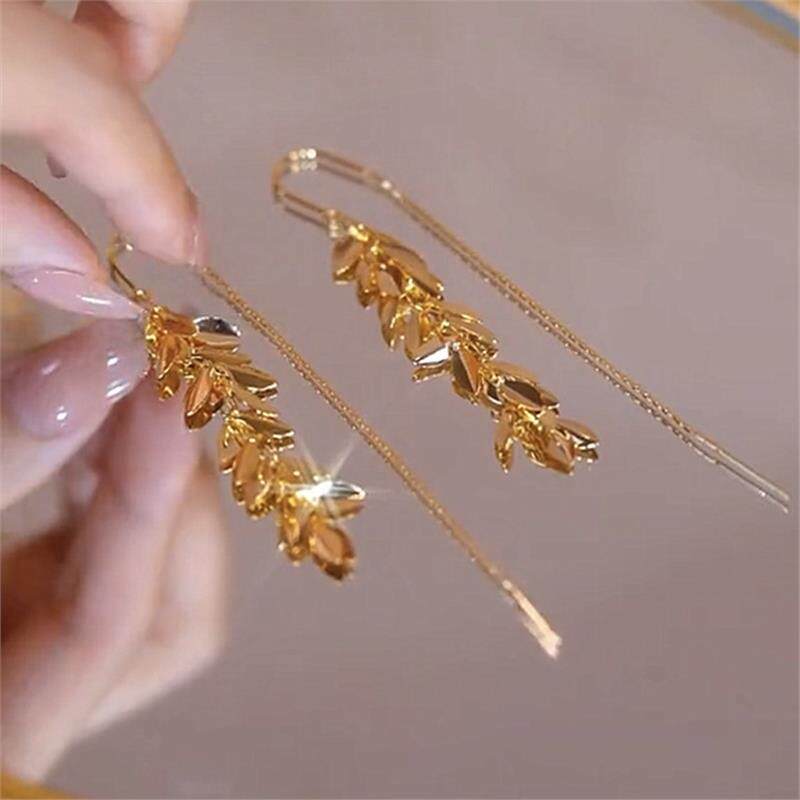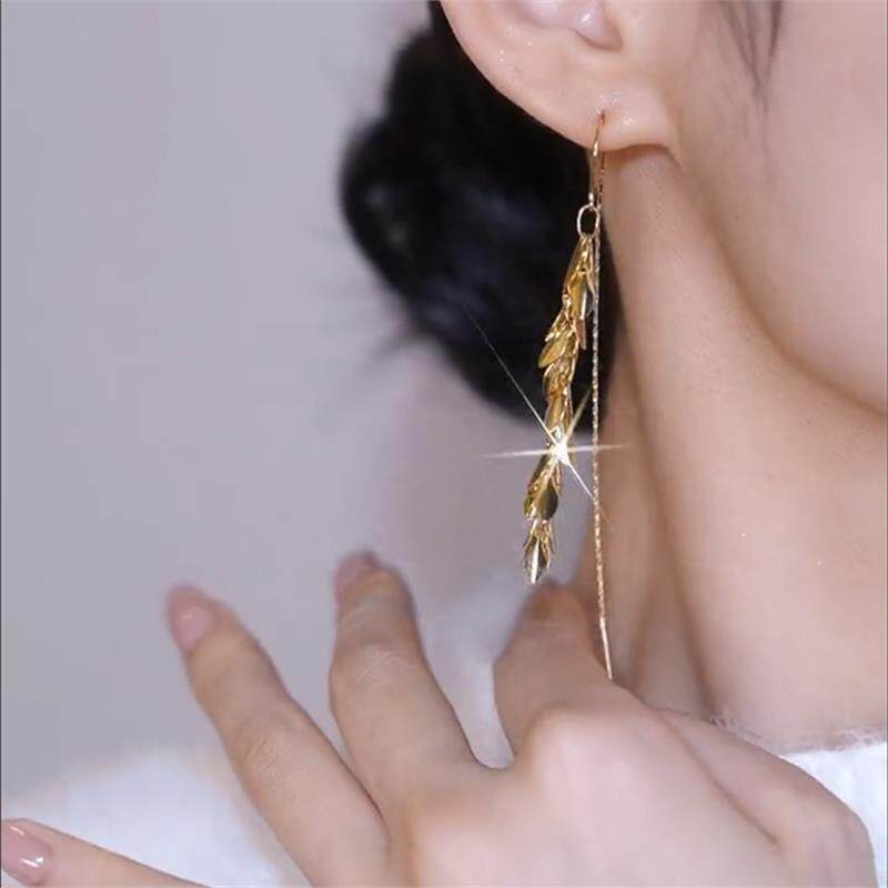 上海专柜撤柜18K金色麦穗长款流苏耳环时尚冷性耳线925银针防过敏