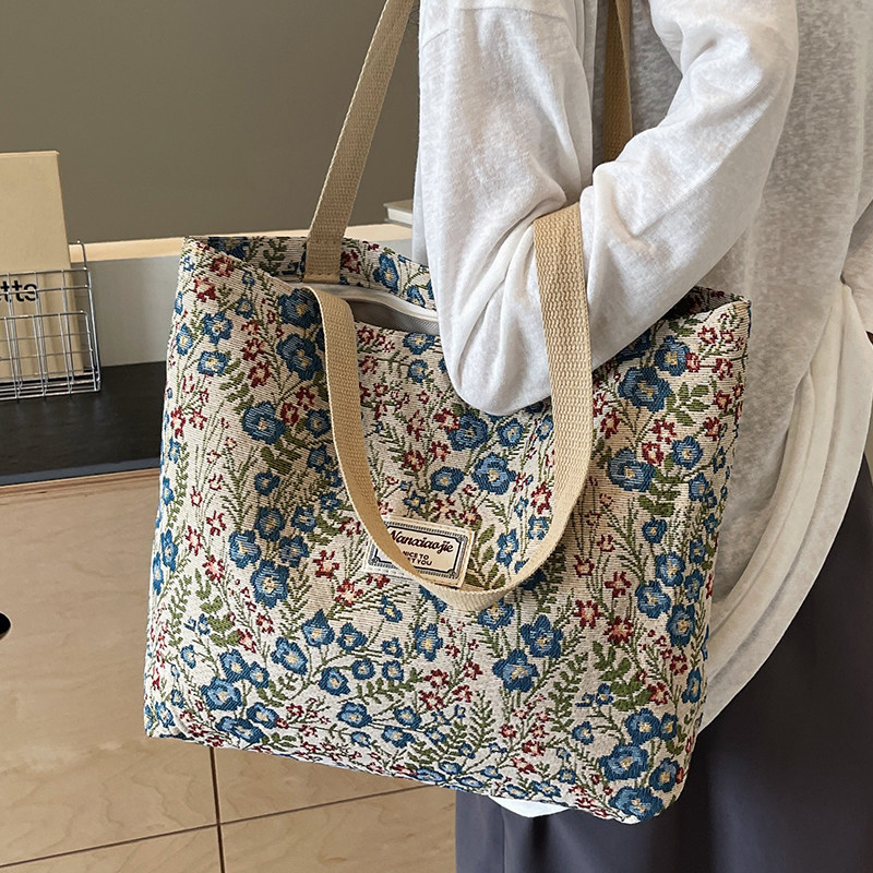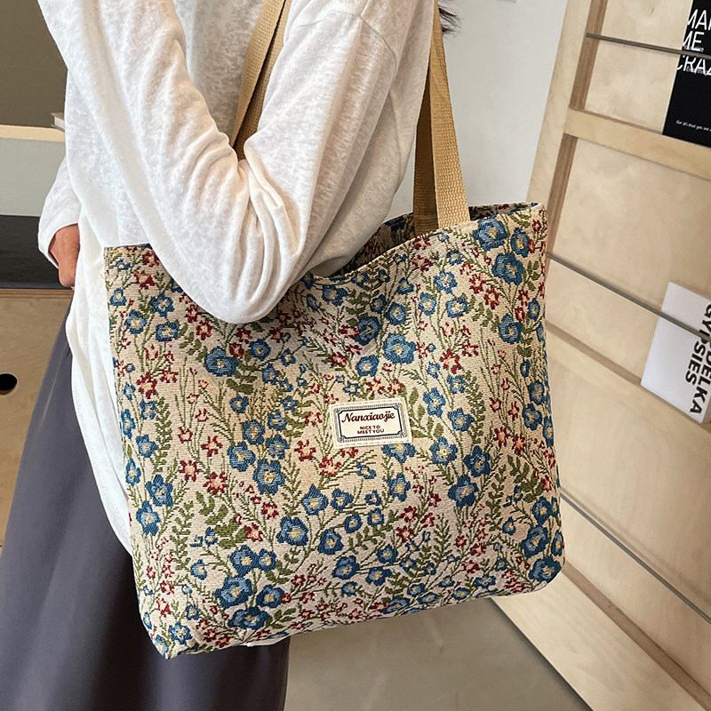 碎花托特包包女2025新款韩系手提帆布包大容量休闲通勤大包单肩包