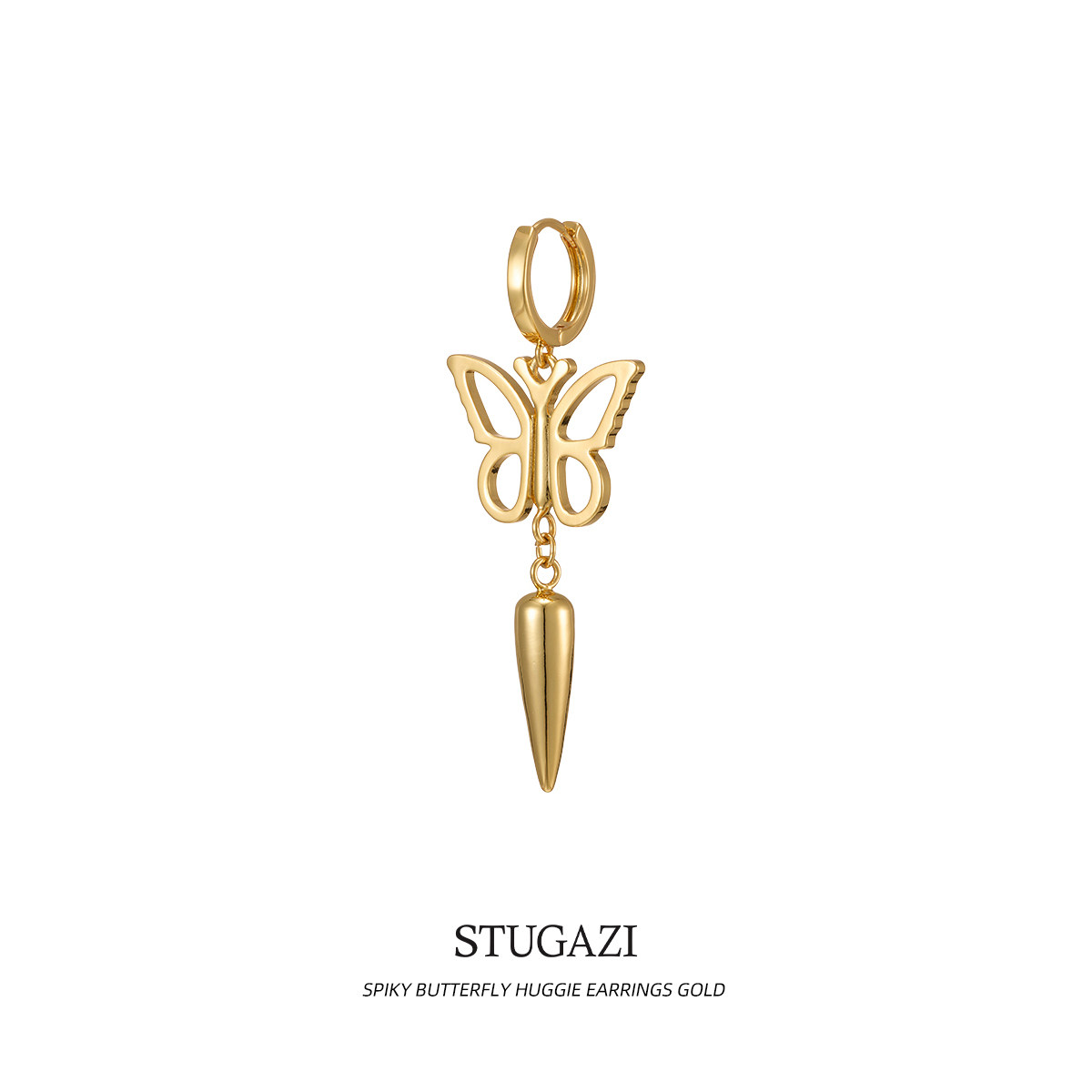 STUGAZISpiky Butterfly Huggie蝴蝶尖锥耳环时尚设计中性ins男女