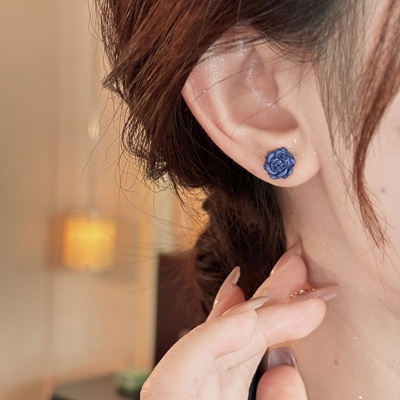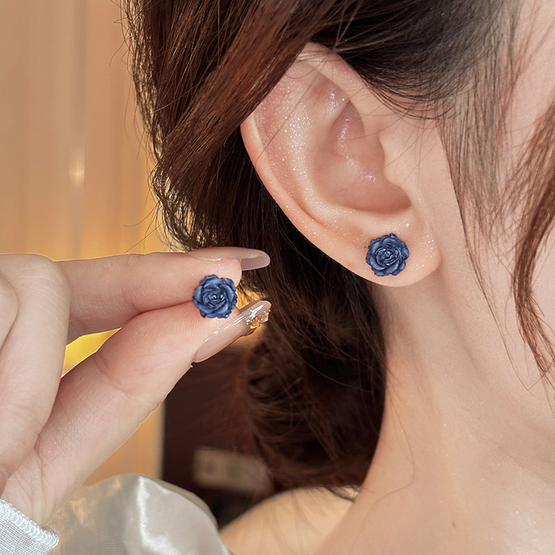 紫色玫瑰花朵耳环女独特漂亮睡觉免摘耳环小巧精致耳饰925纯银针