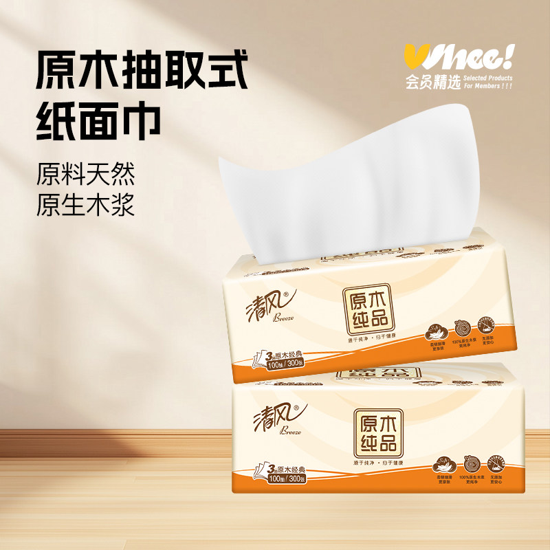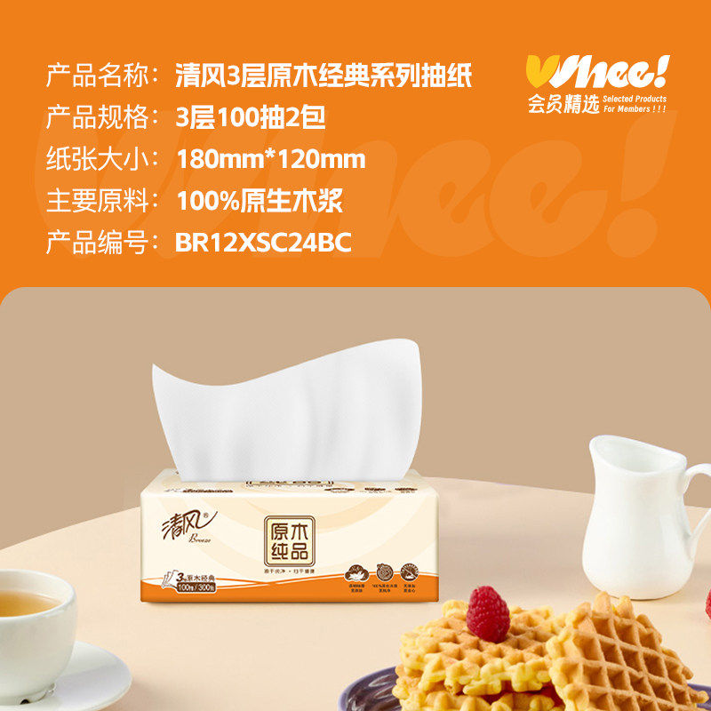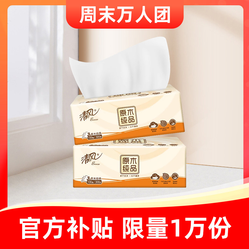 【芭芭农场】清风原木纯品抽纸3层100抽2包