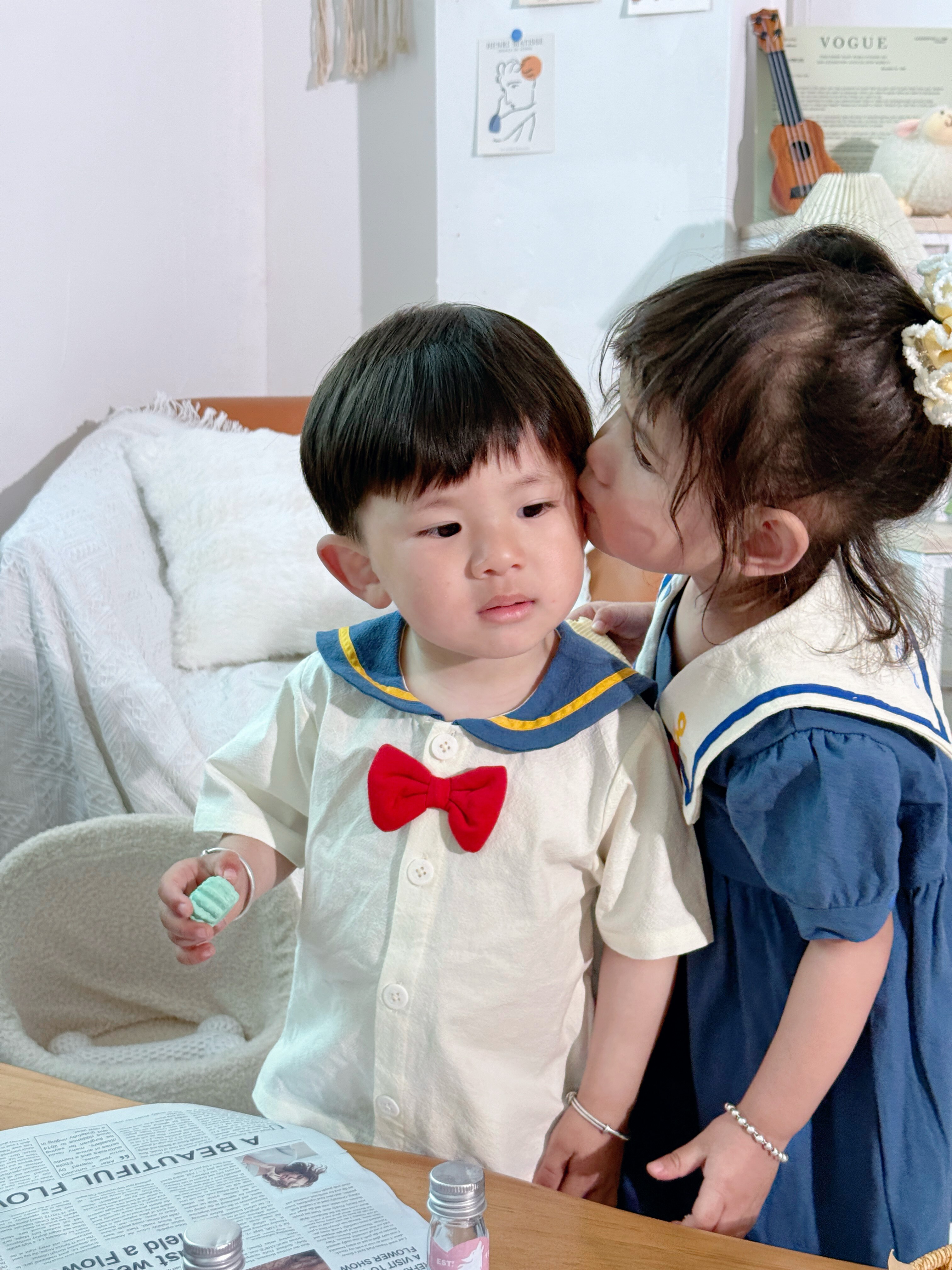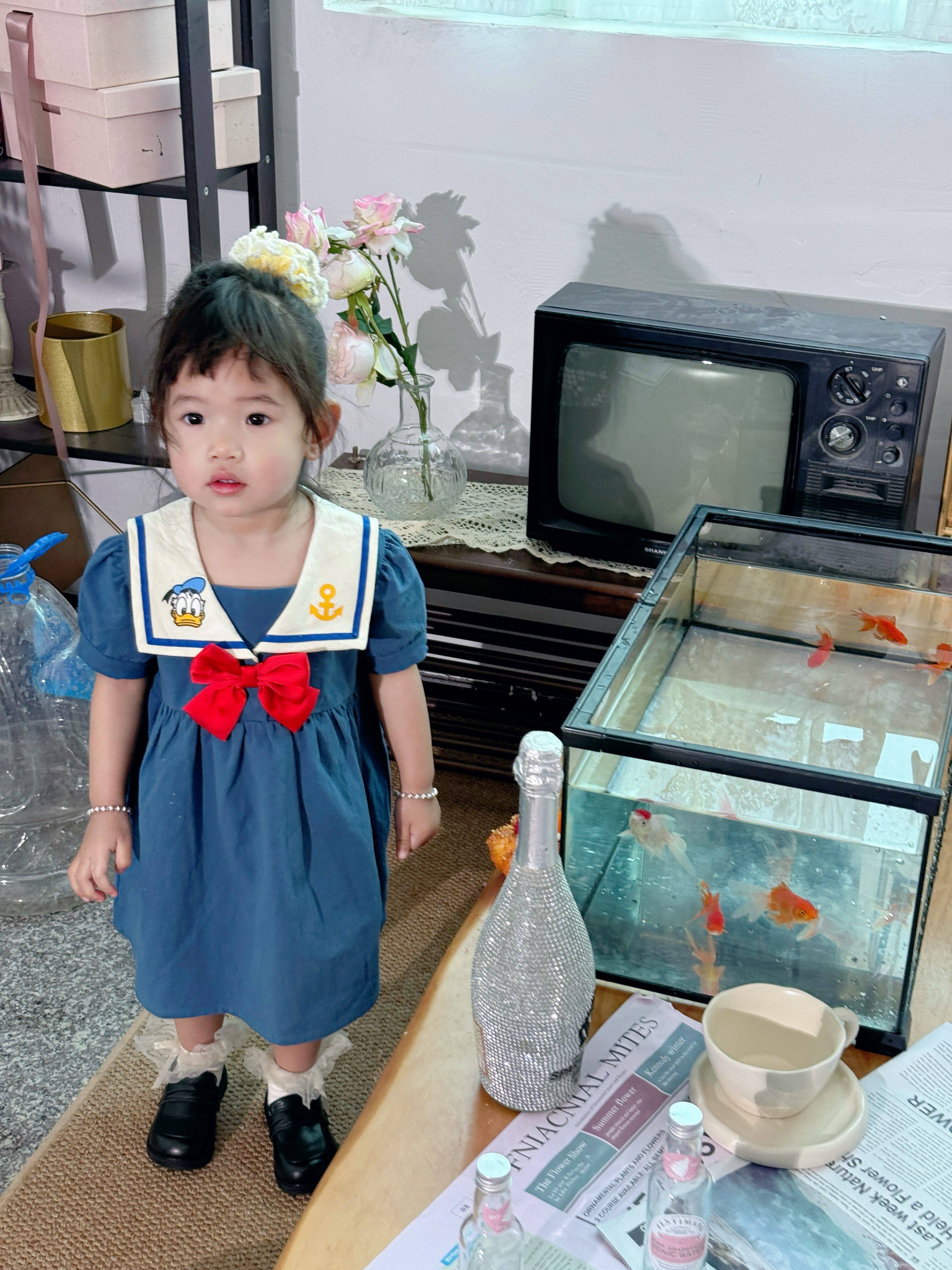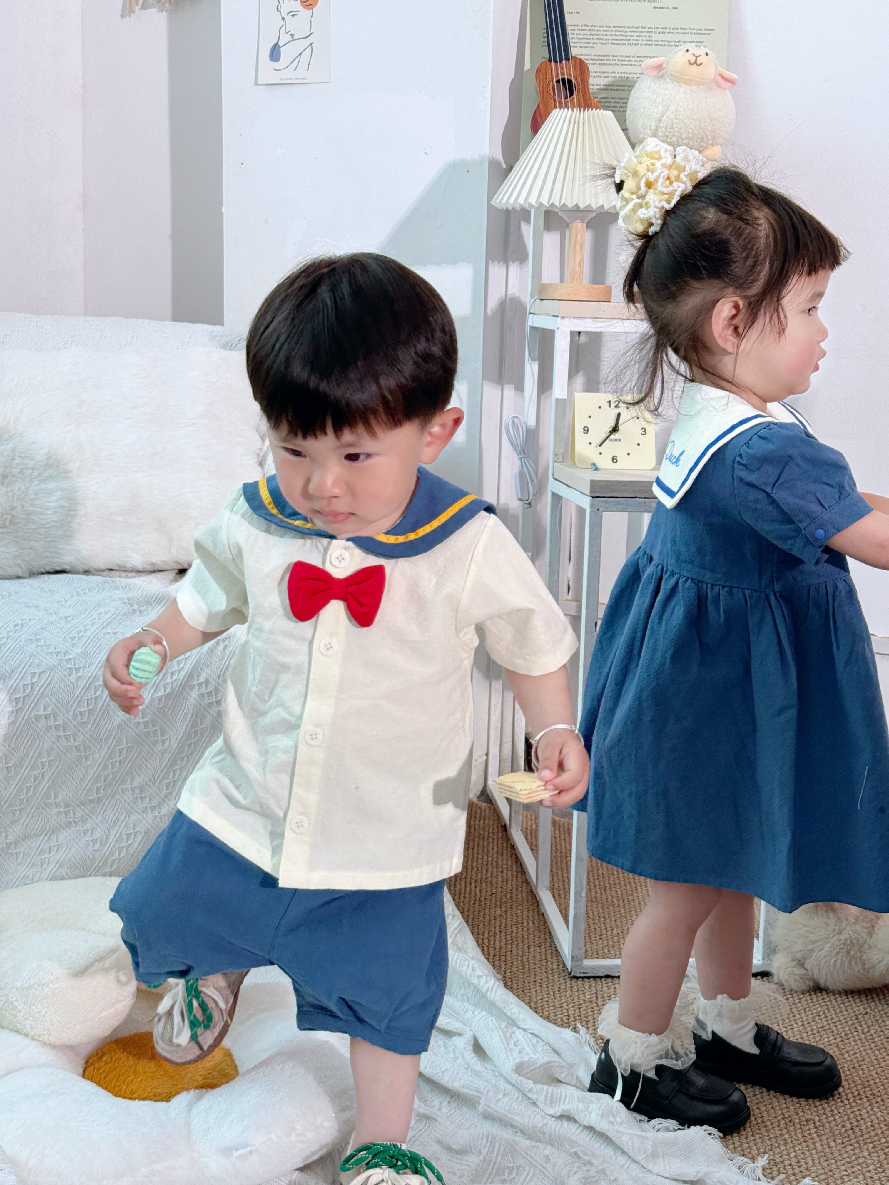 预4月出翻单日单小木马原单男女宝兄妹装海军领连衣裙套装看描述