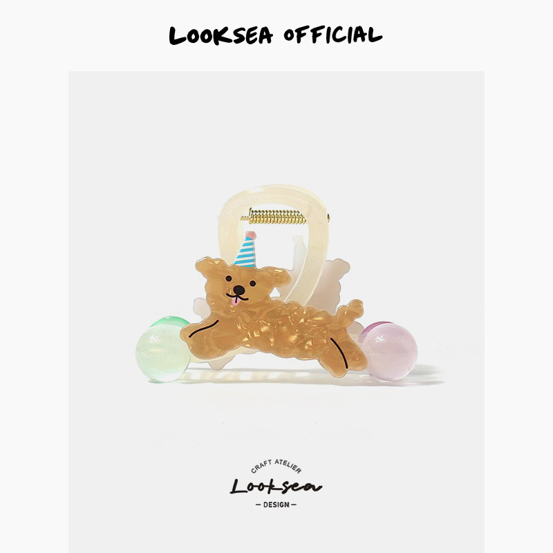Looksea official萌趣炫彩飞扑小狗抓夹原创设计鲨鱼夹后脑勺发夹