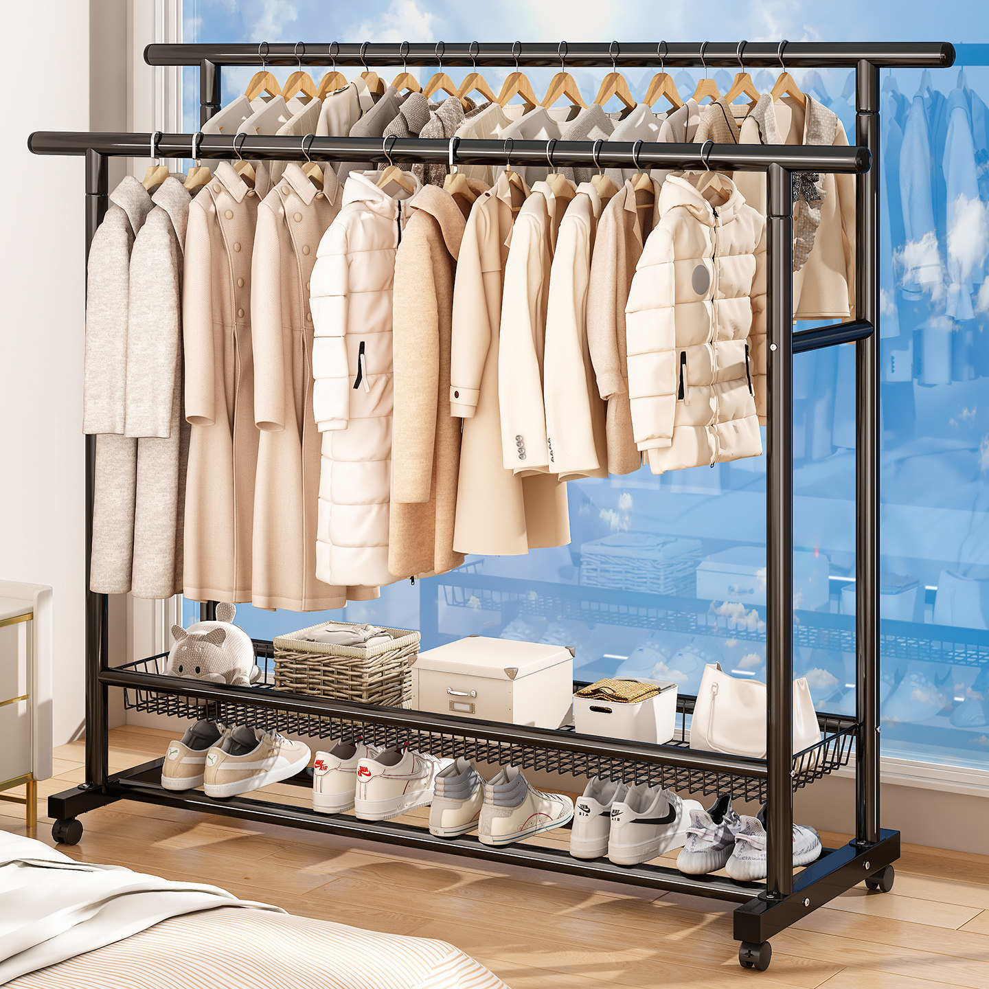 衣架卧室落地晾衣架家用简易衣架多功能衣帽架加厚挂衣架衣服架子