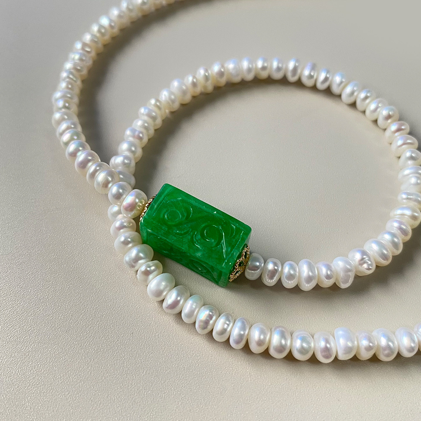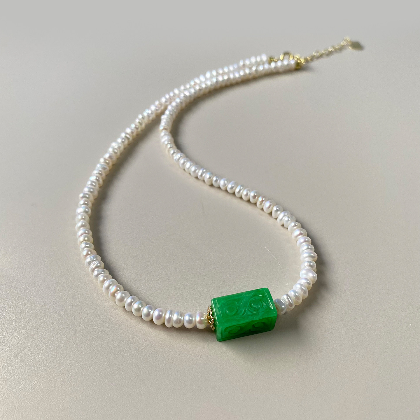 珍氏珠宝天然淡水珍珠项链女款 中式翡翠简约温婉气质颈链锁骨链