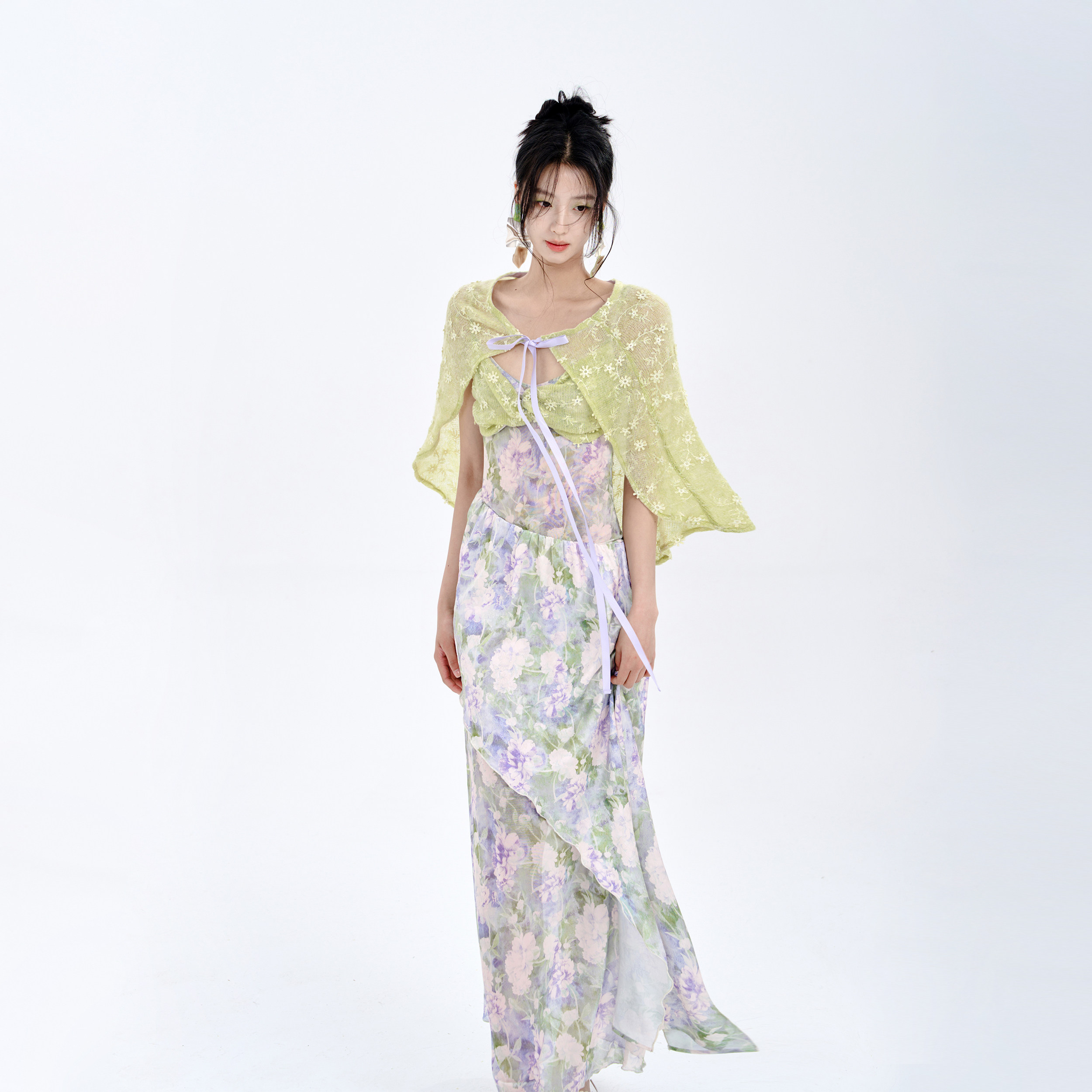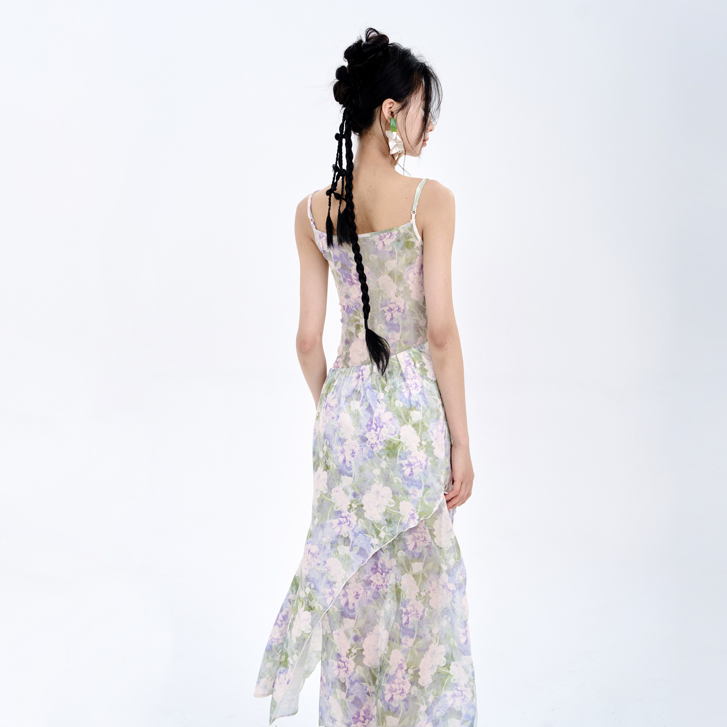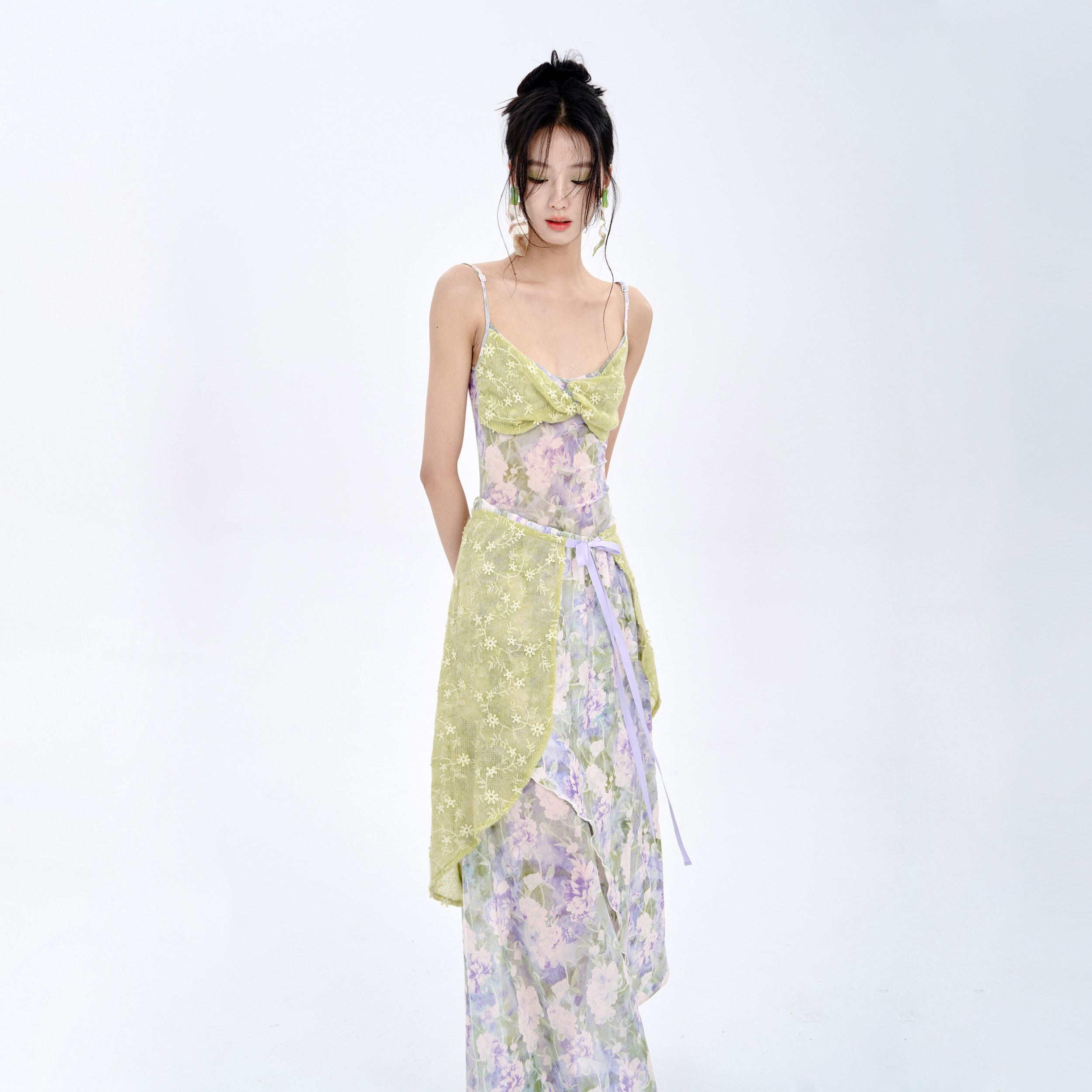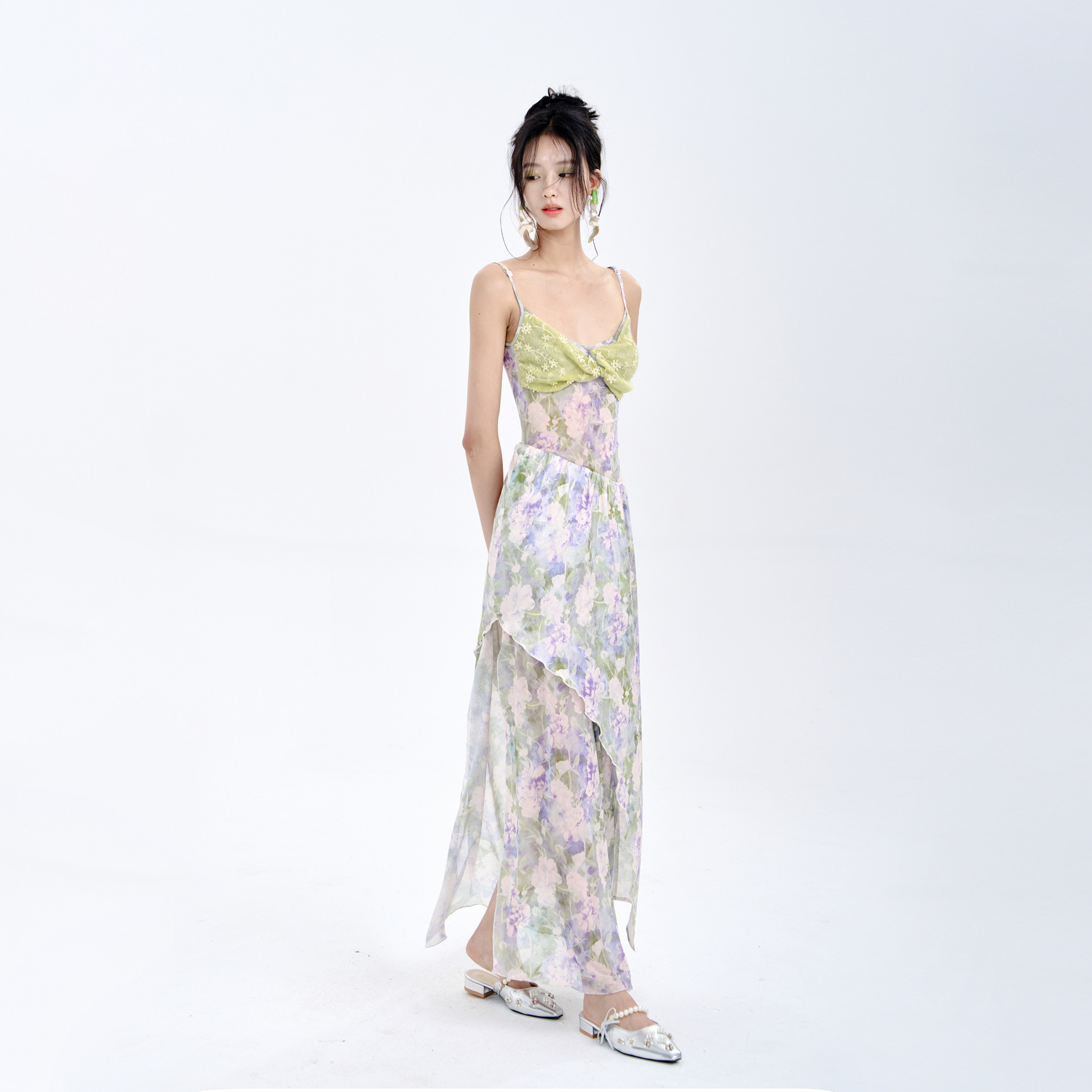MildRate原创 莫奈花园浪漫拼接抹胸吊带连衣裙两件套海边度假裙