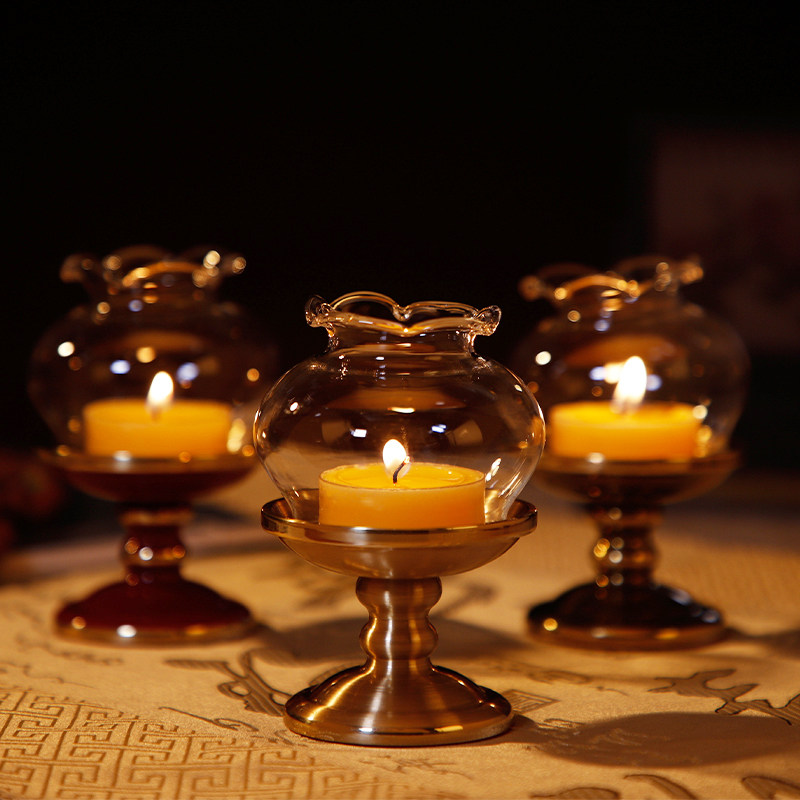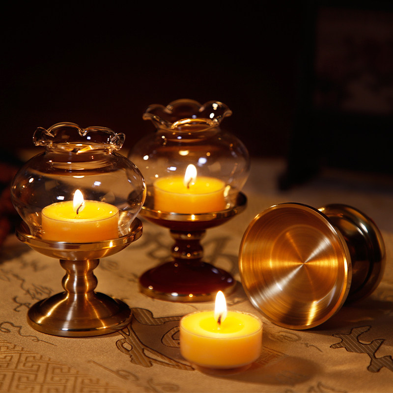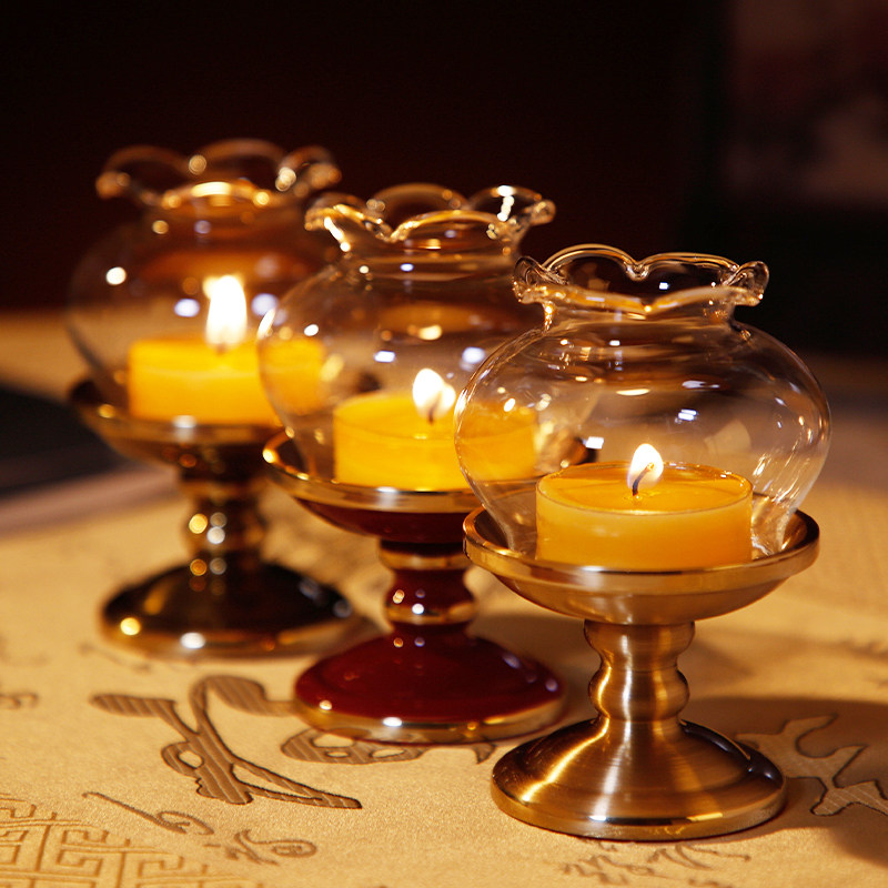 纯铜酥油灯座供佛蜡烛烛台佛前供佛灯莲花防风蜡烛底座七星灯架