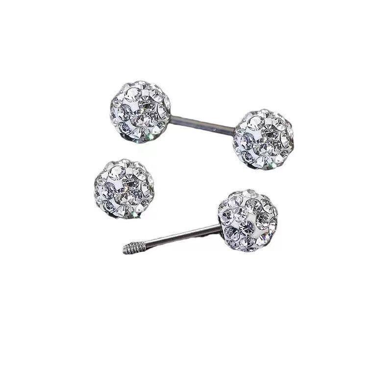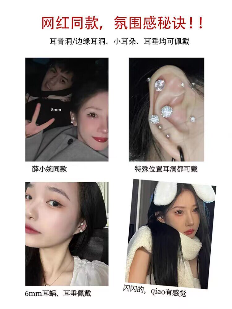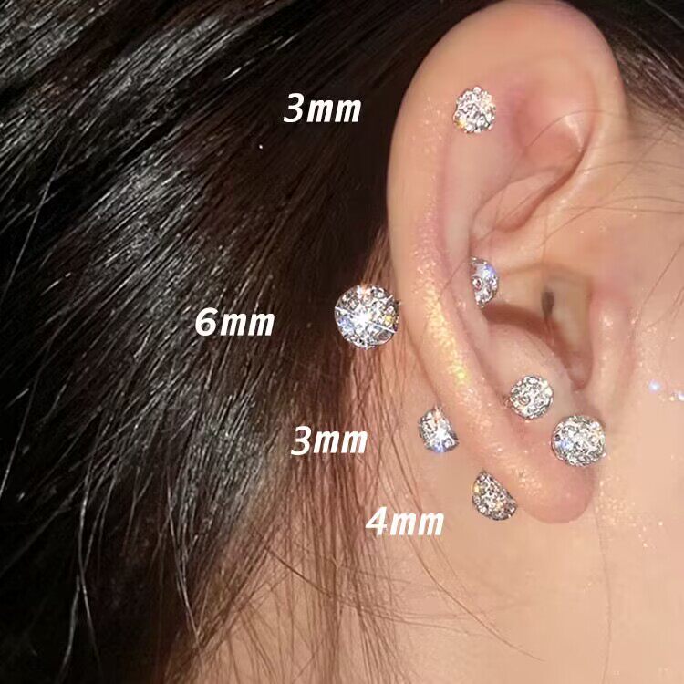 双头钻球耳钉女养耳洞耳骨钉小众高级感锆石耳蜗钉钻石耳环银耳饰