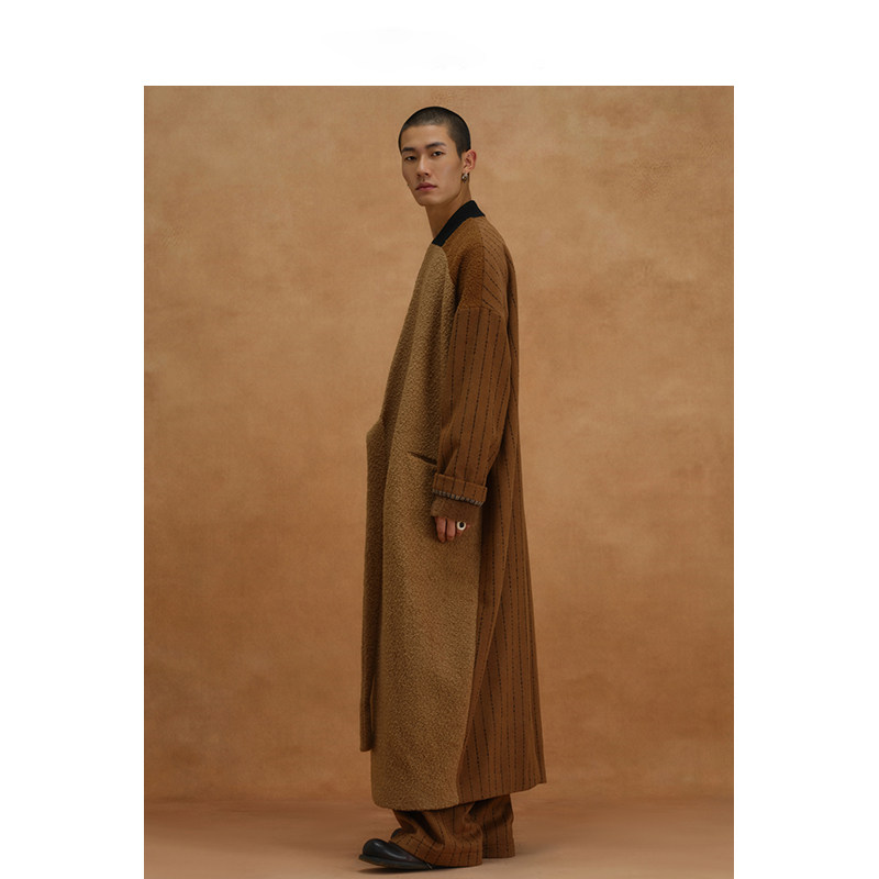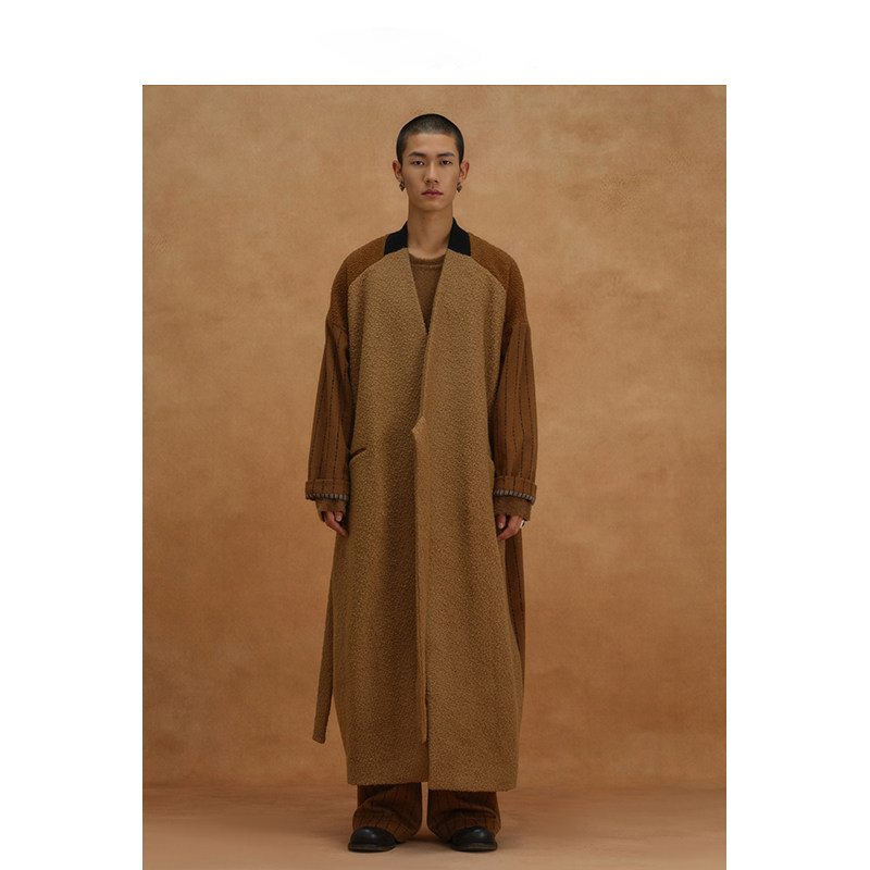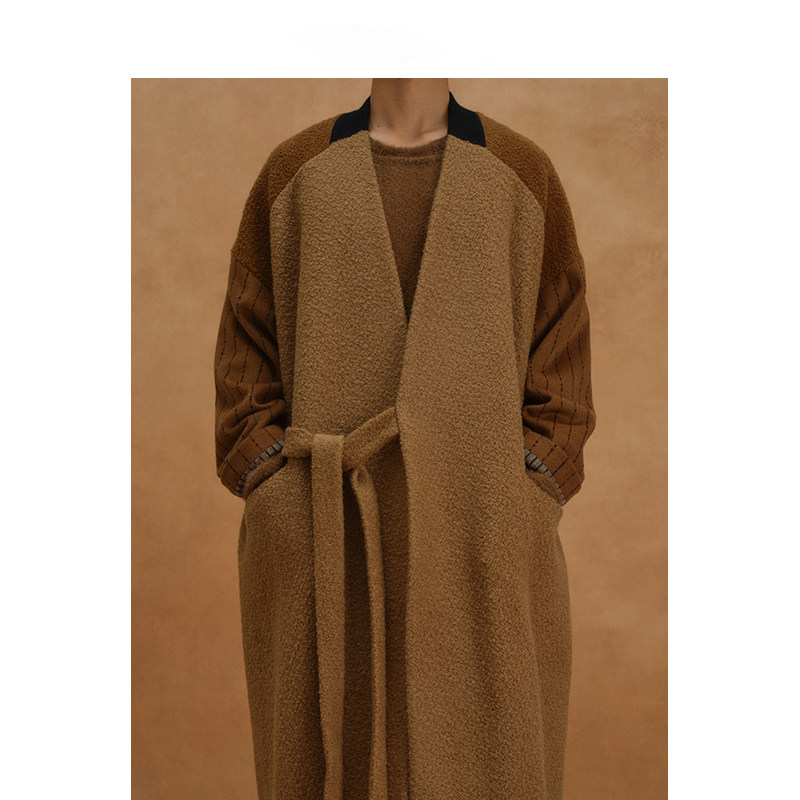 【MORIN KHUUR设计师品牌】拼色毛呢宽松长款系带大衣外套