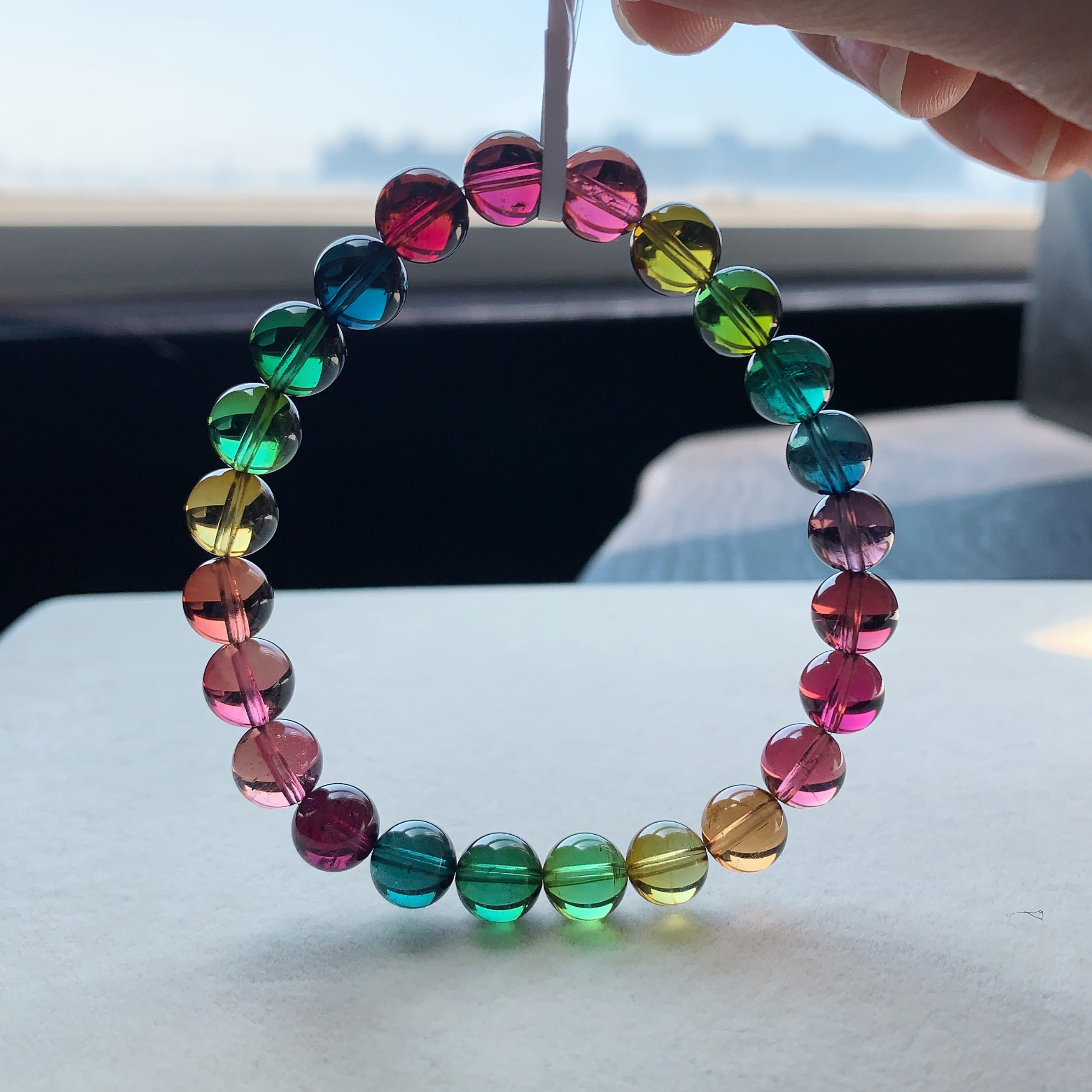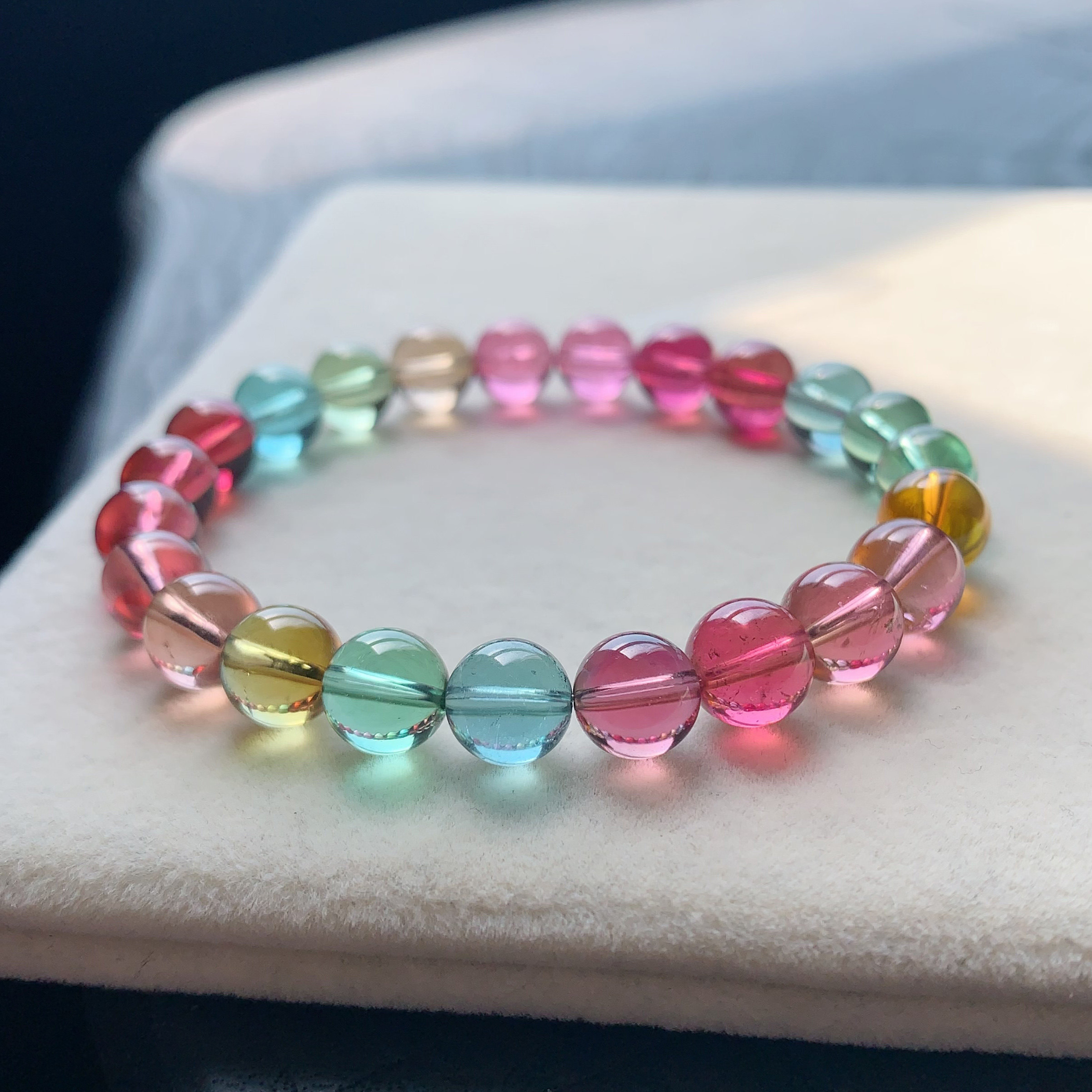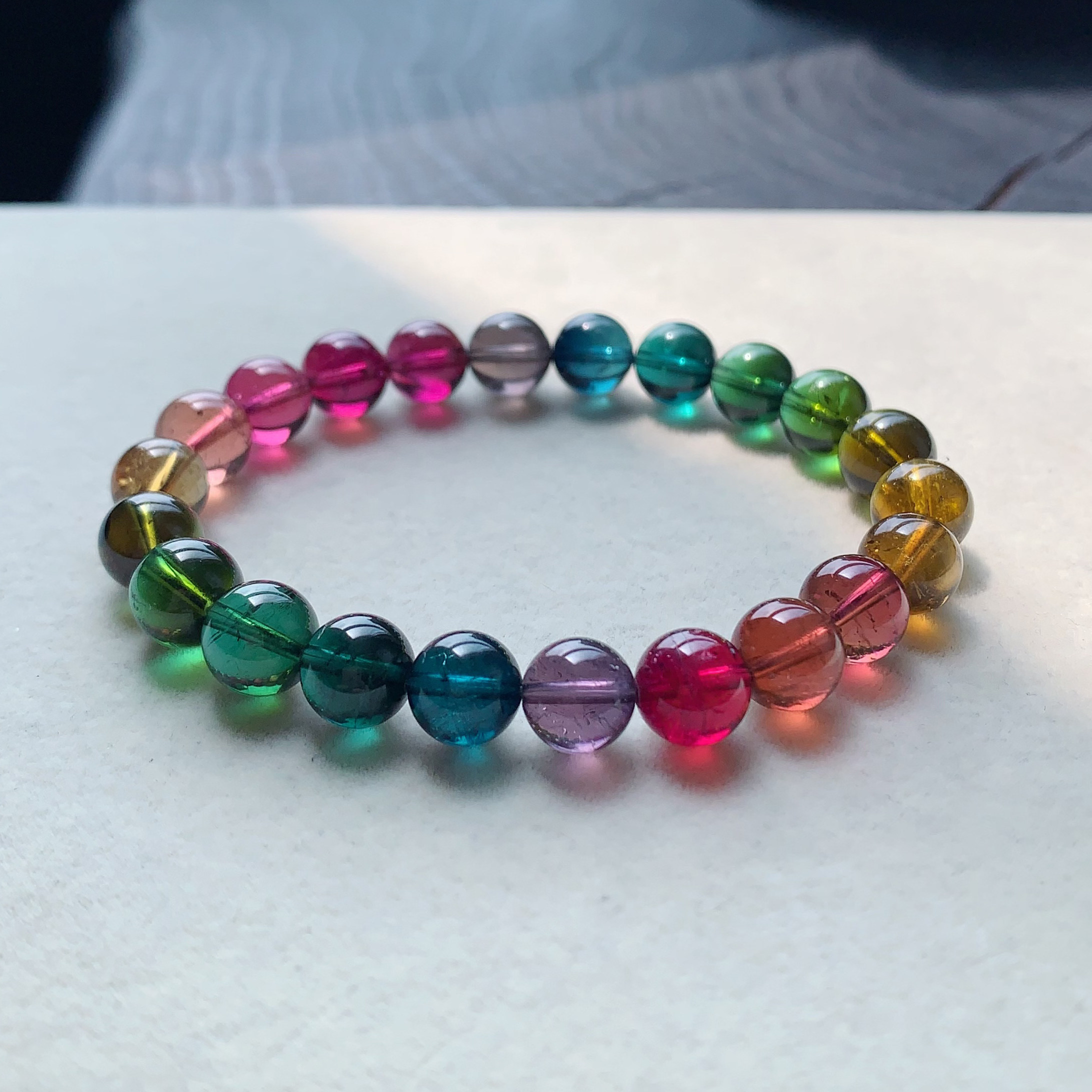 天然老矿碧玺手串手链女款高级感彩虹单圈巴西招财转运送女友闺蜜