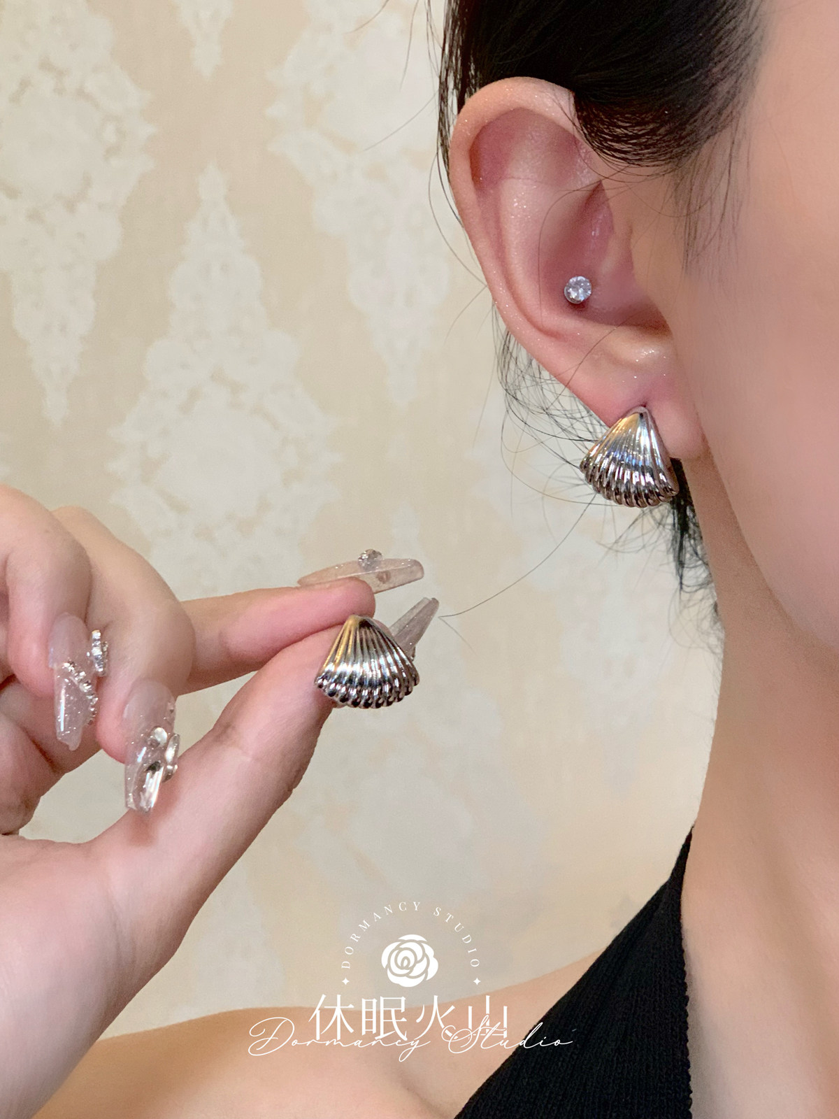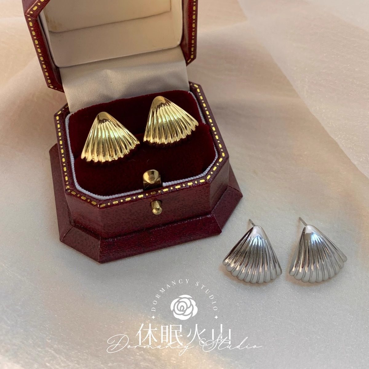 「经典贝壳」fever同款法式金属电镀14k真金耳钉简约复古大气耳环