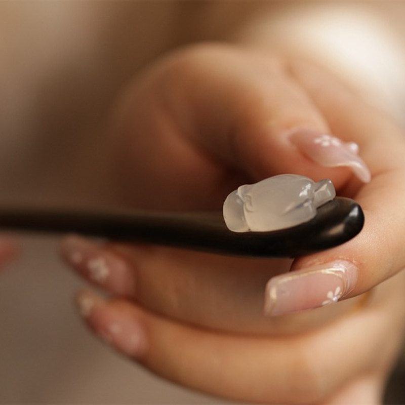白玉小狐狸 新中式古风木质簪子头饰发簪汉服盘发檀木木簪女