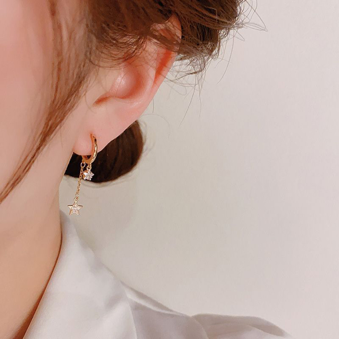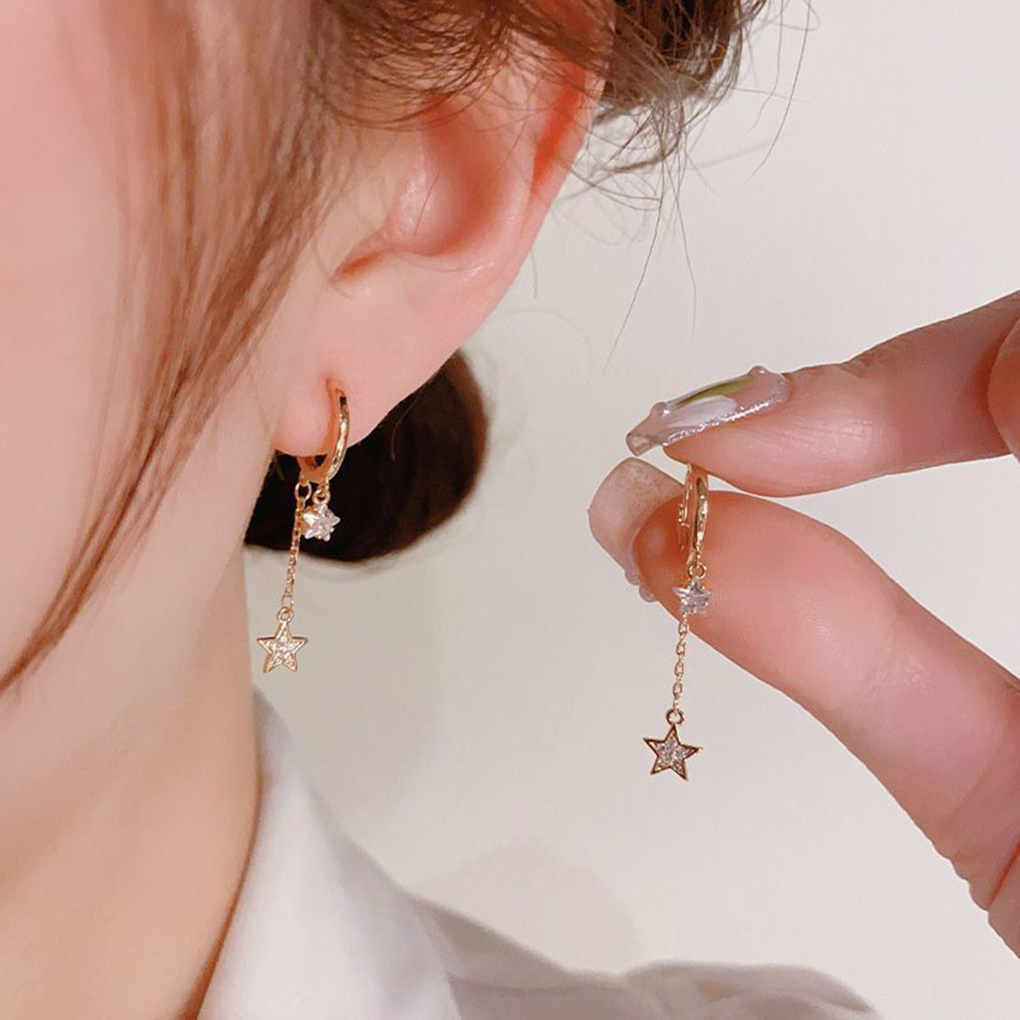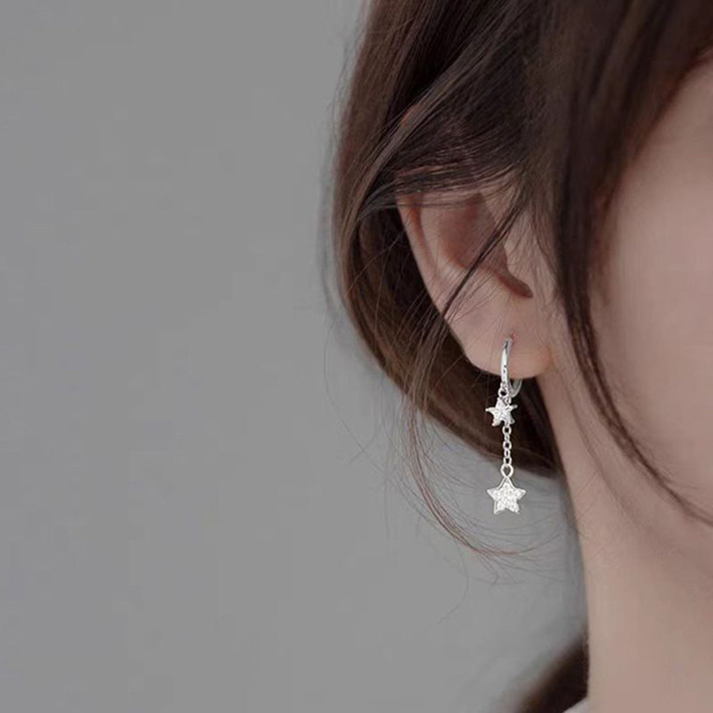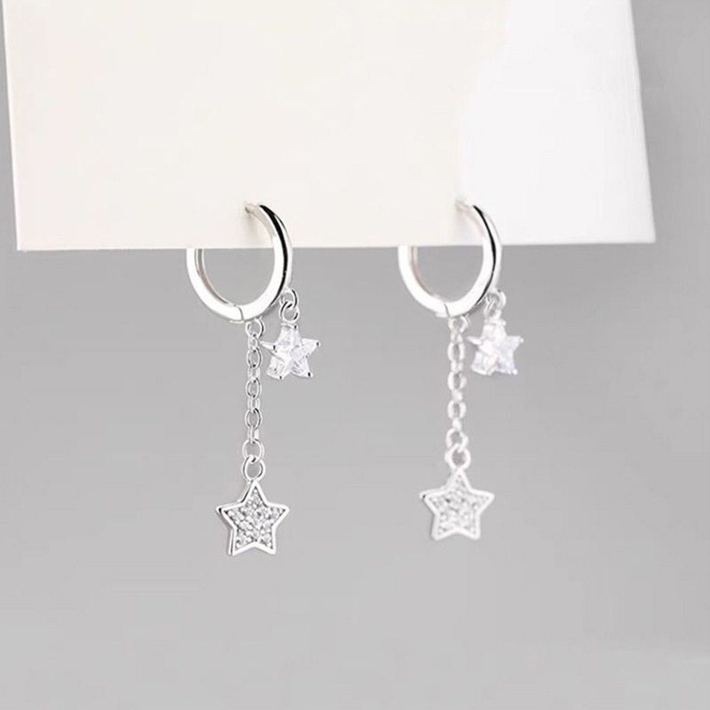 s925银针锆石星星流苏耳扣女气质微镶五角星耳环精致时尚百搭耳饰