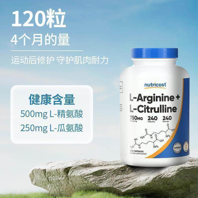 Nutricost进口L-精氨酸L-瓜氨酸助运动表现肌肉恢复健身运动