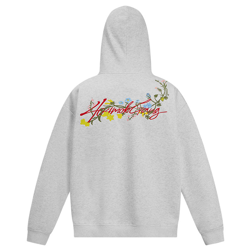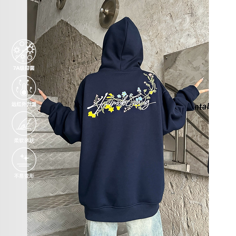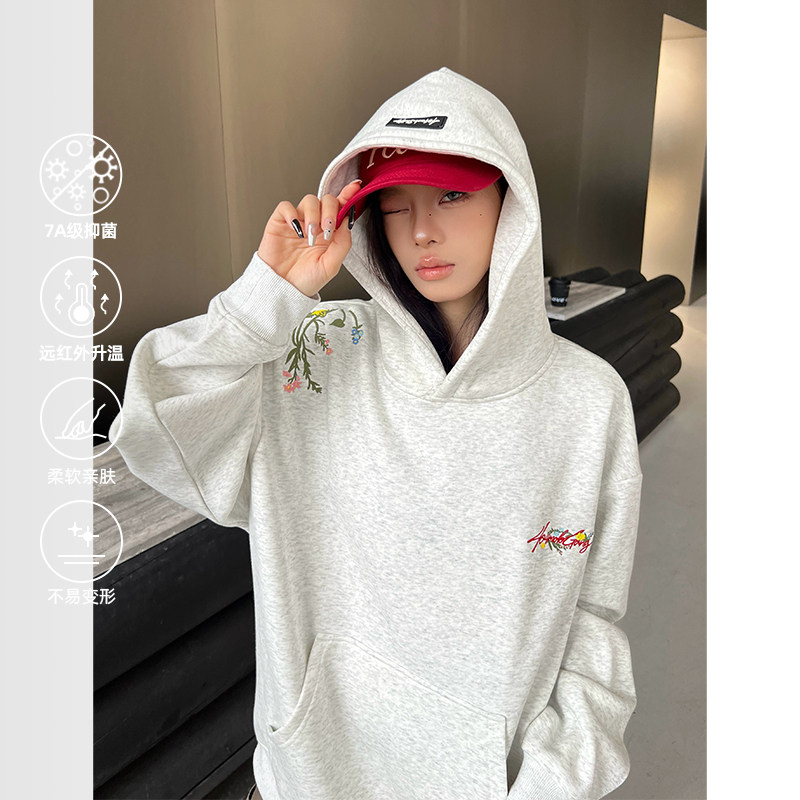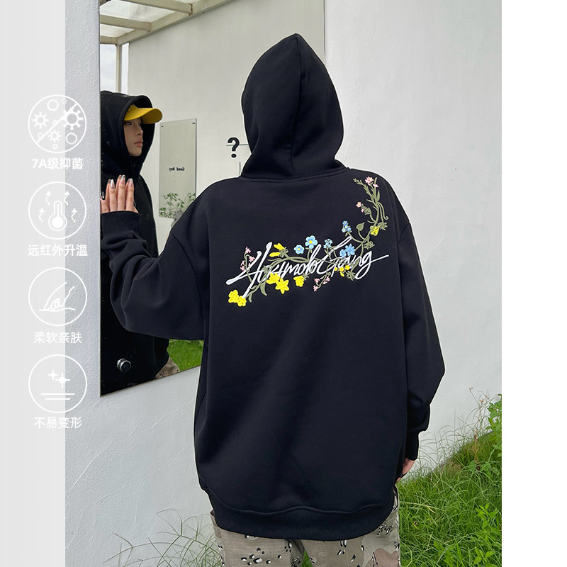 404MOB复古花卉字母刺绣连帽卫衣男美式个性重磅情侣宽松上衣帽衫