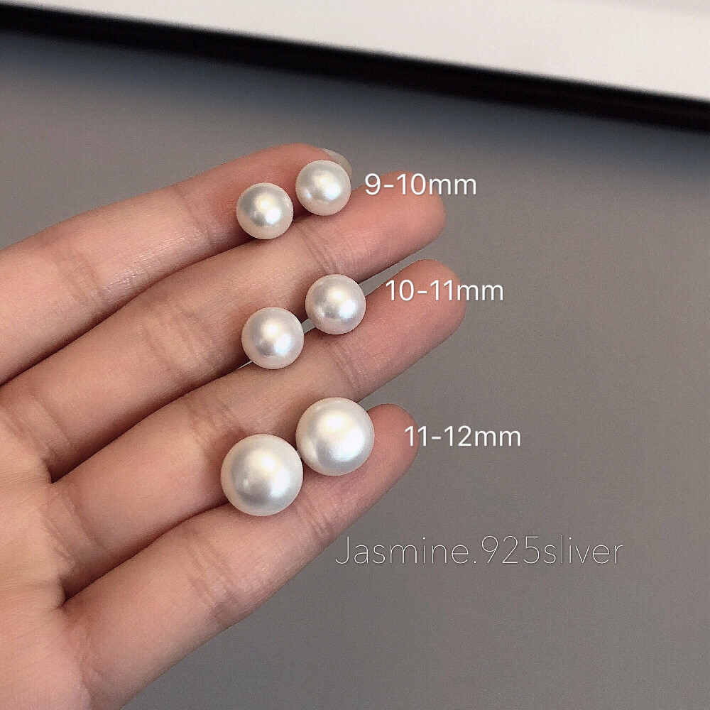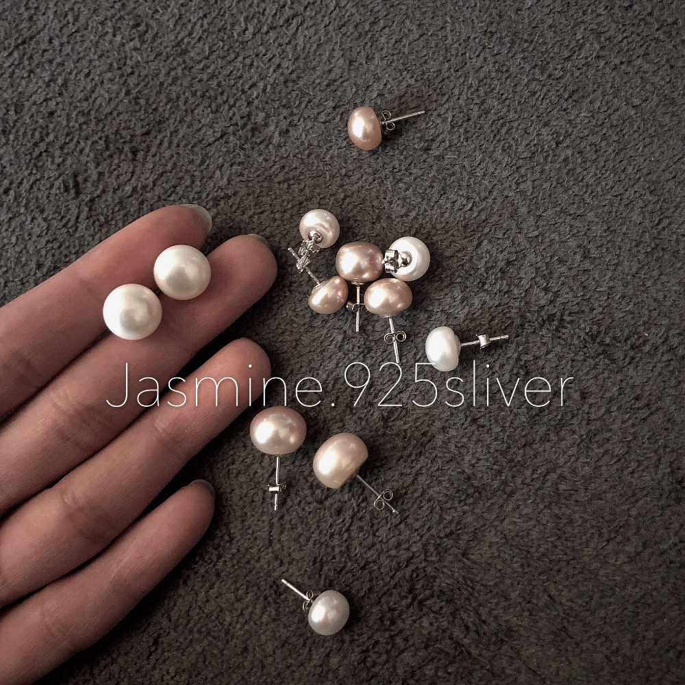 S925淡水珍珠耳钉纯银耳骨钉天然扁圆面包耳饰女睡觉不用摘