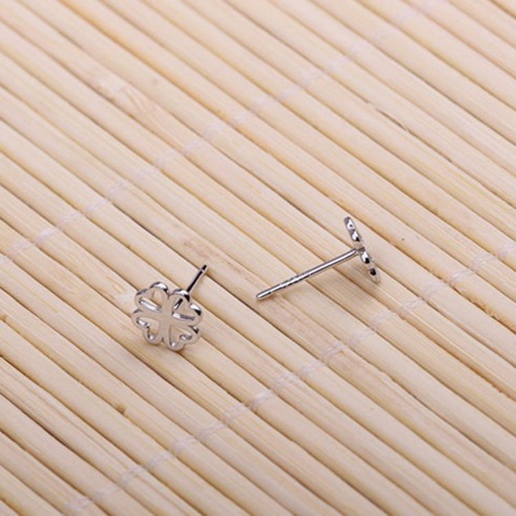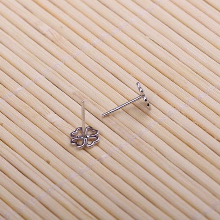 925纯银幸运四叶草耳钉 素银镂空爱的四叶草耳钉