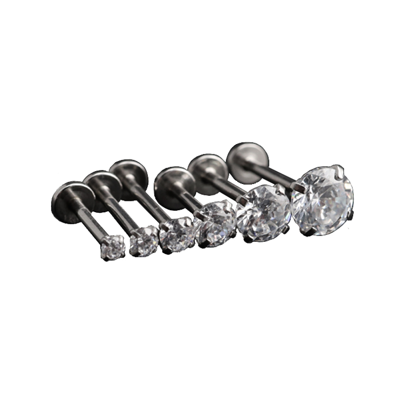 Shinma钛钢爆闪锆石内螺纹唇钉小耳骨钉耳钉唇环饰品2mm唇钉耳饰