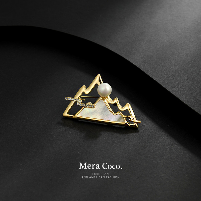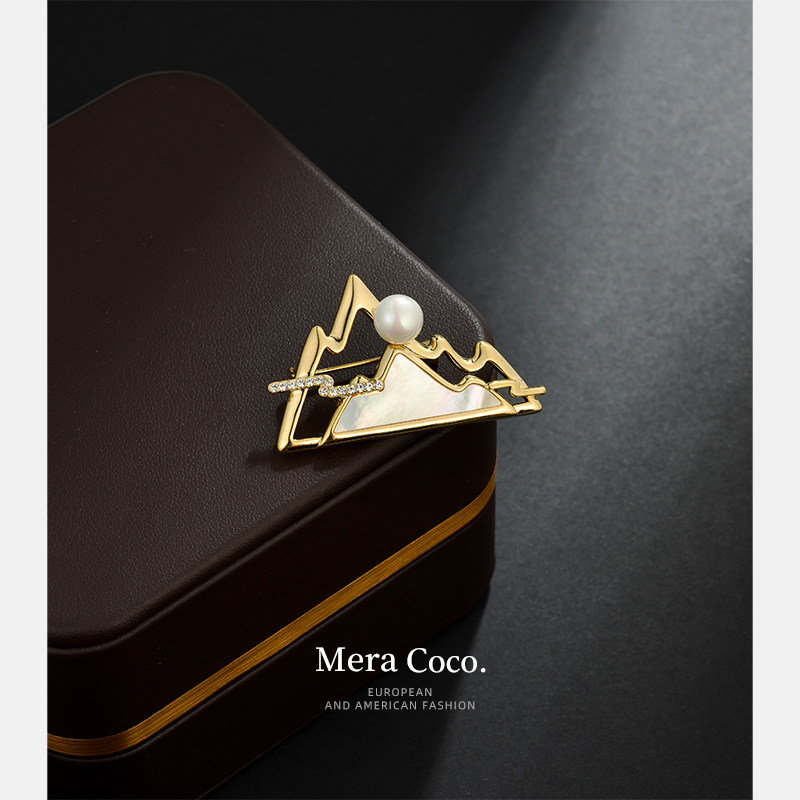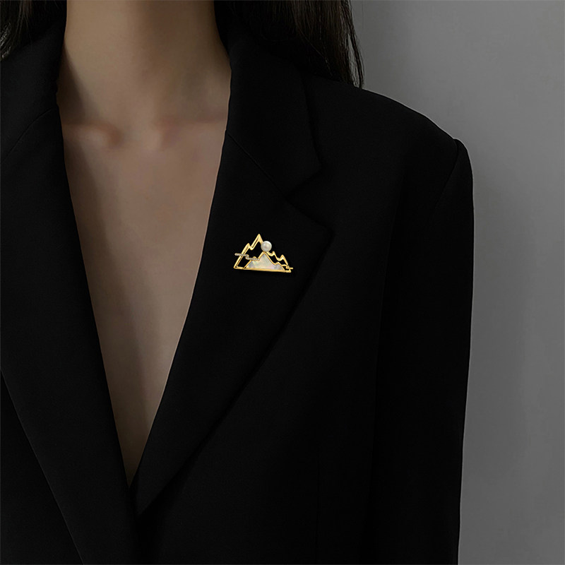 新中式高端精致江山云晓胸针女天然母贝珍珠胸花汉服西装别针配饰