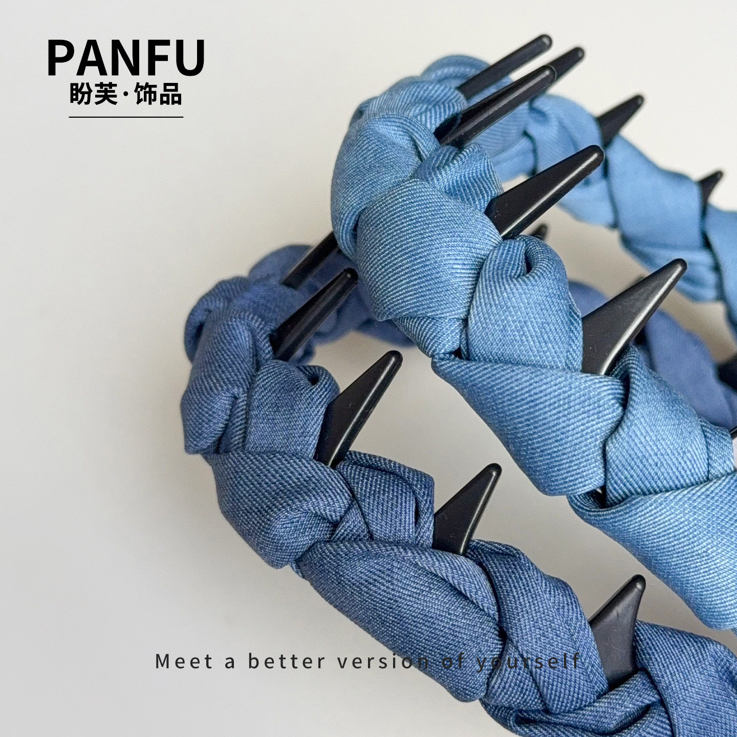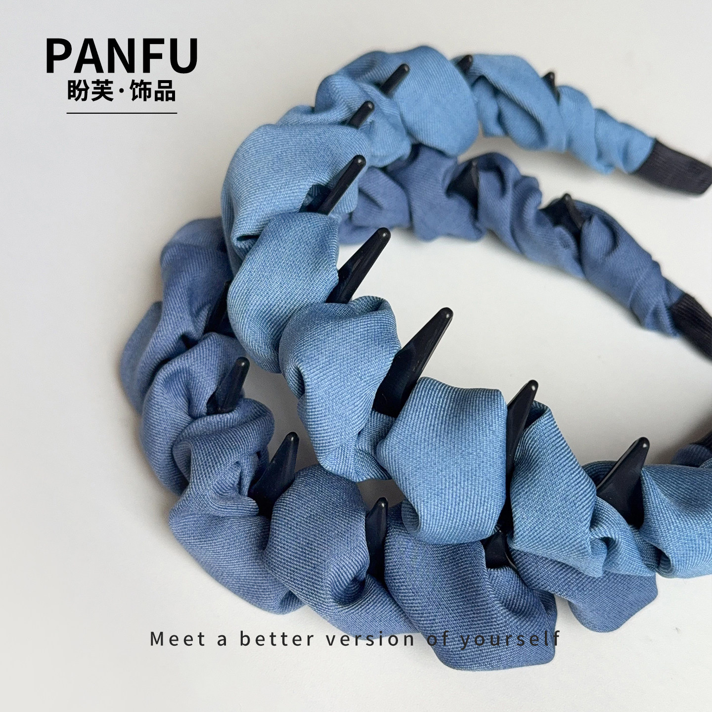 夏日甜酷牛仔蓝飘带发箍绑发一体2025新款高颅顶头箍发卡头饰女款