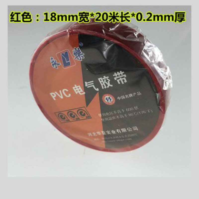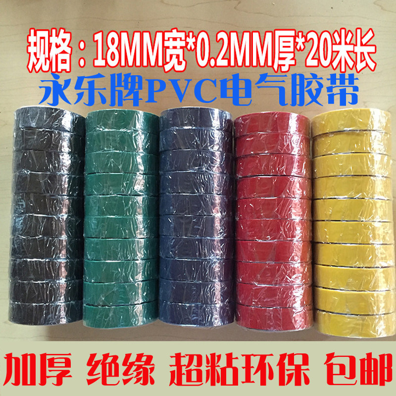 永乐电工胶布黑胶带绝缘超粘pvc阻燃黑红黄蓝绿高压无铅20米厂家