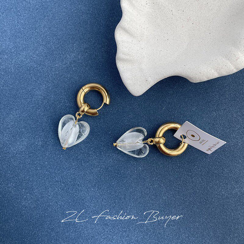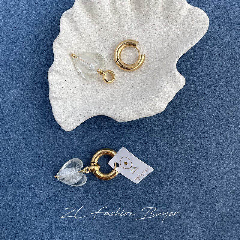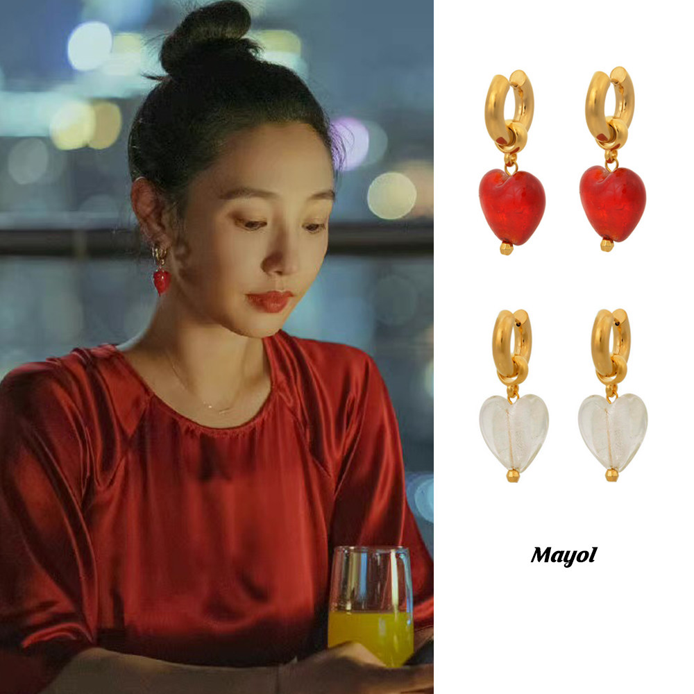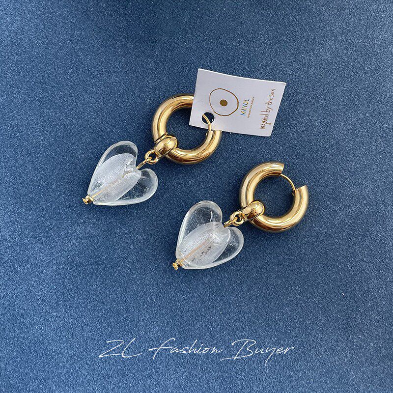 5折清仓Mayol玻璃心形圆环希腊小众耳环明星同款白百何同款