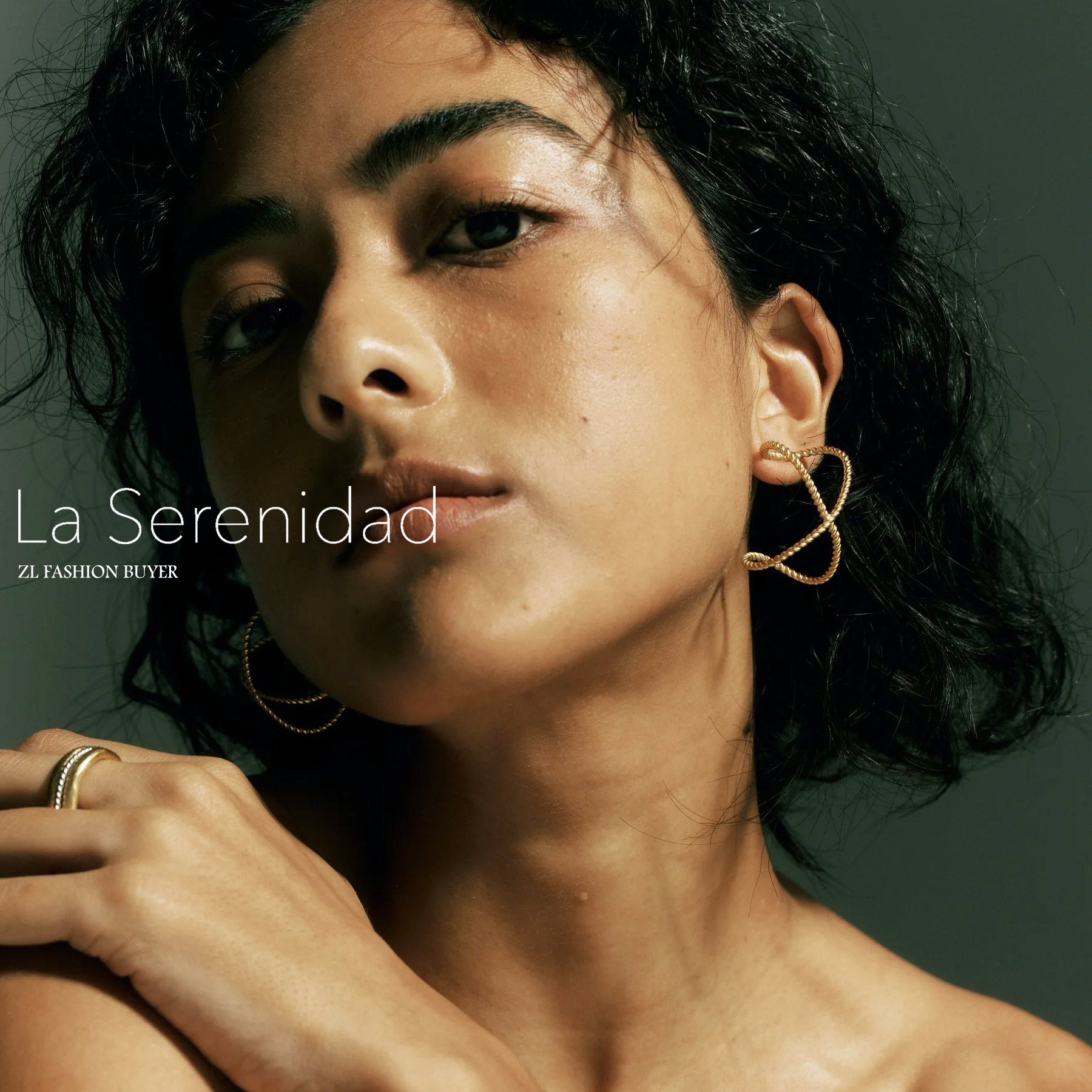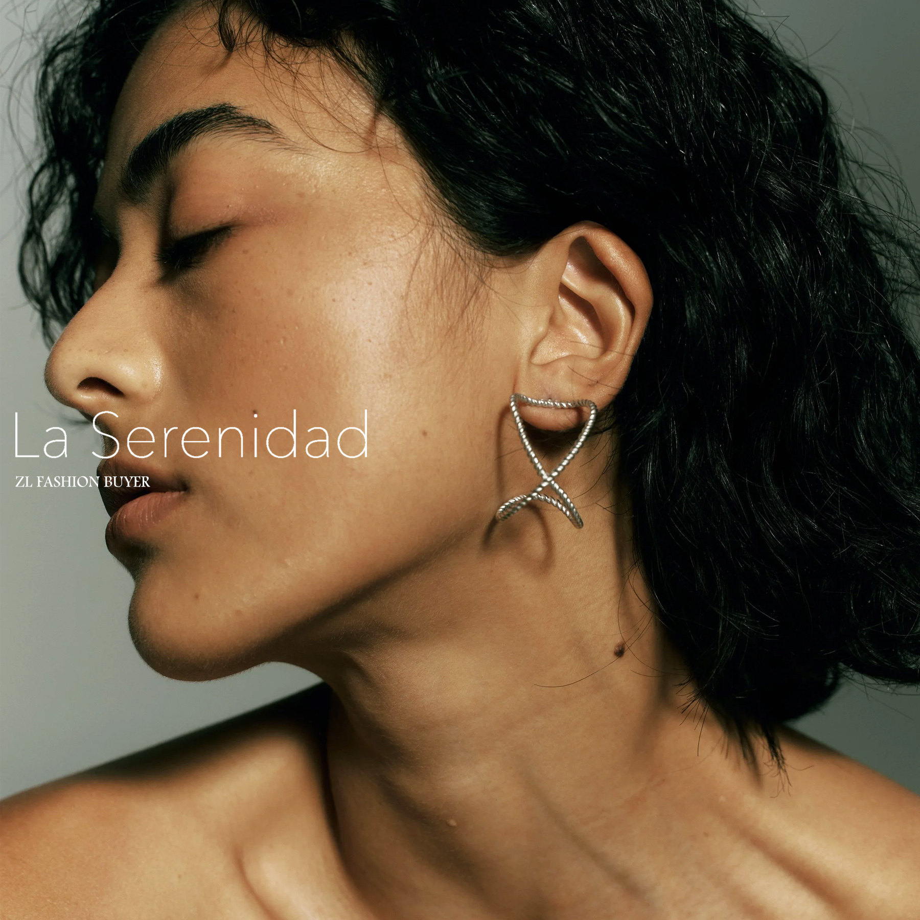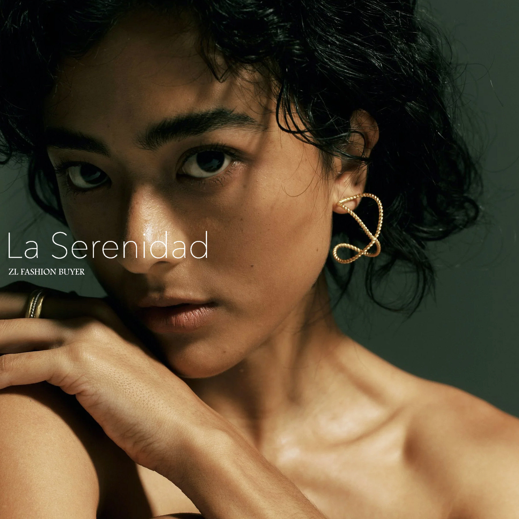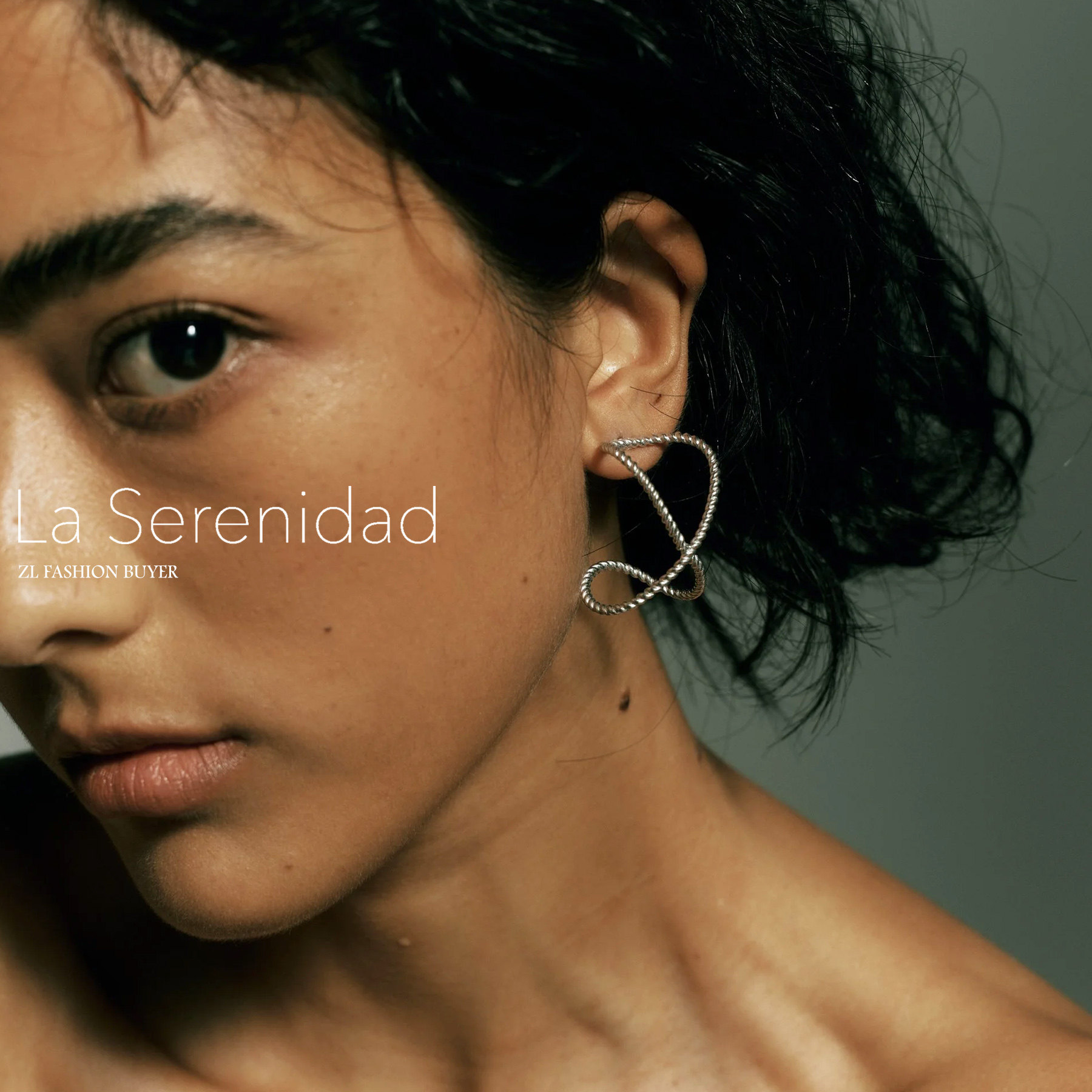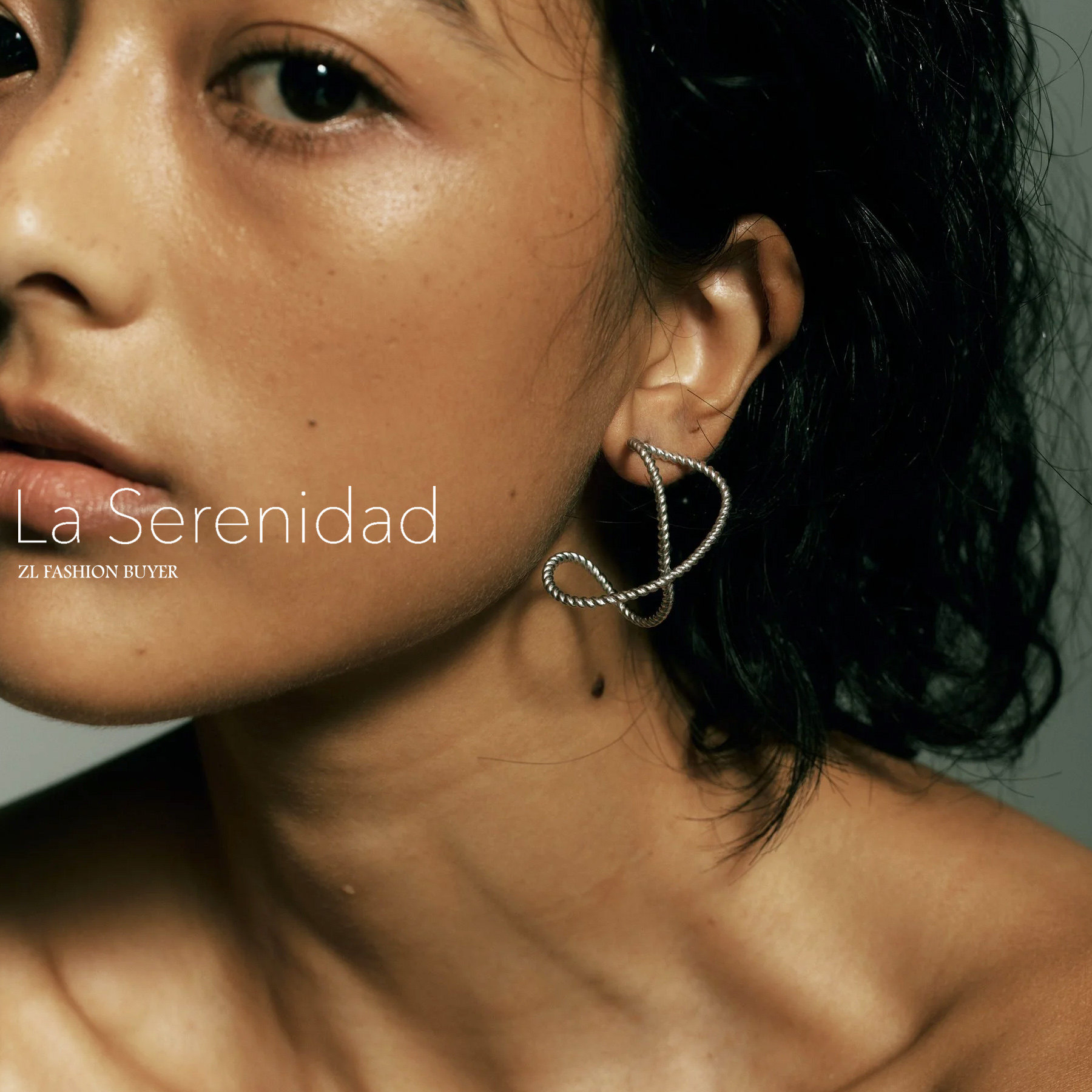 现货La Serenidad曲线环绕拧绳扭结8字形交错细环耳环小众高级