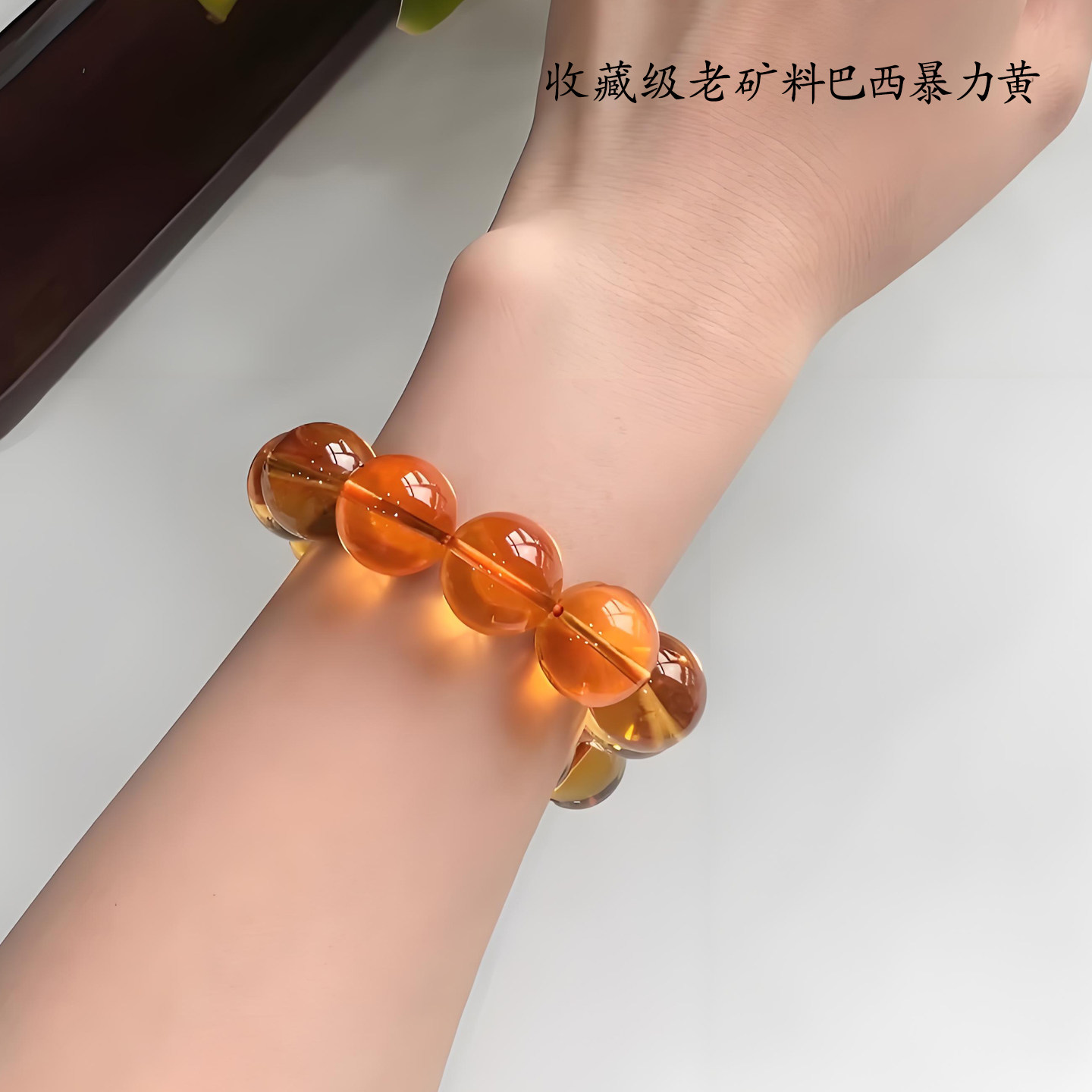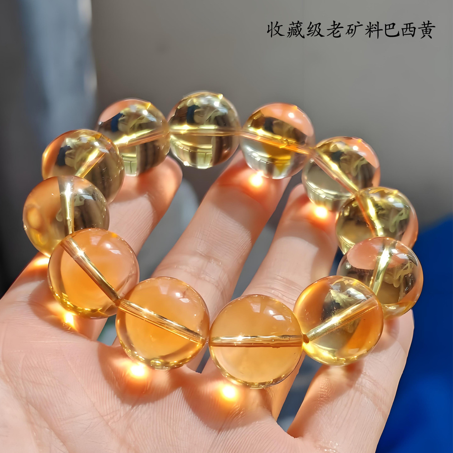 天然珍藏级巴西黄水晶手串全净体招财旺事业高档水晶手链一图一物