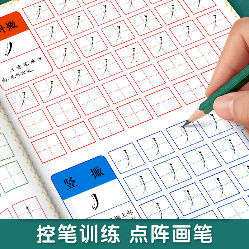 点阵控笔训练幼儿园数字笔画偏旁汉字描红本拼音英文字母练字帖