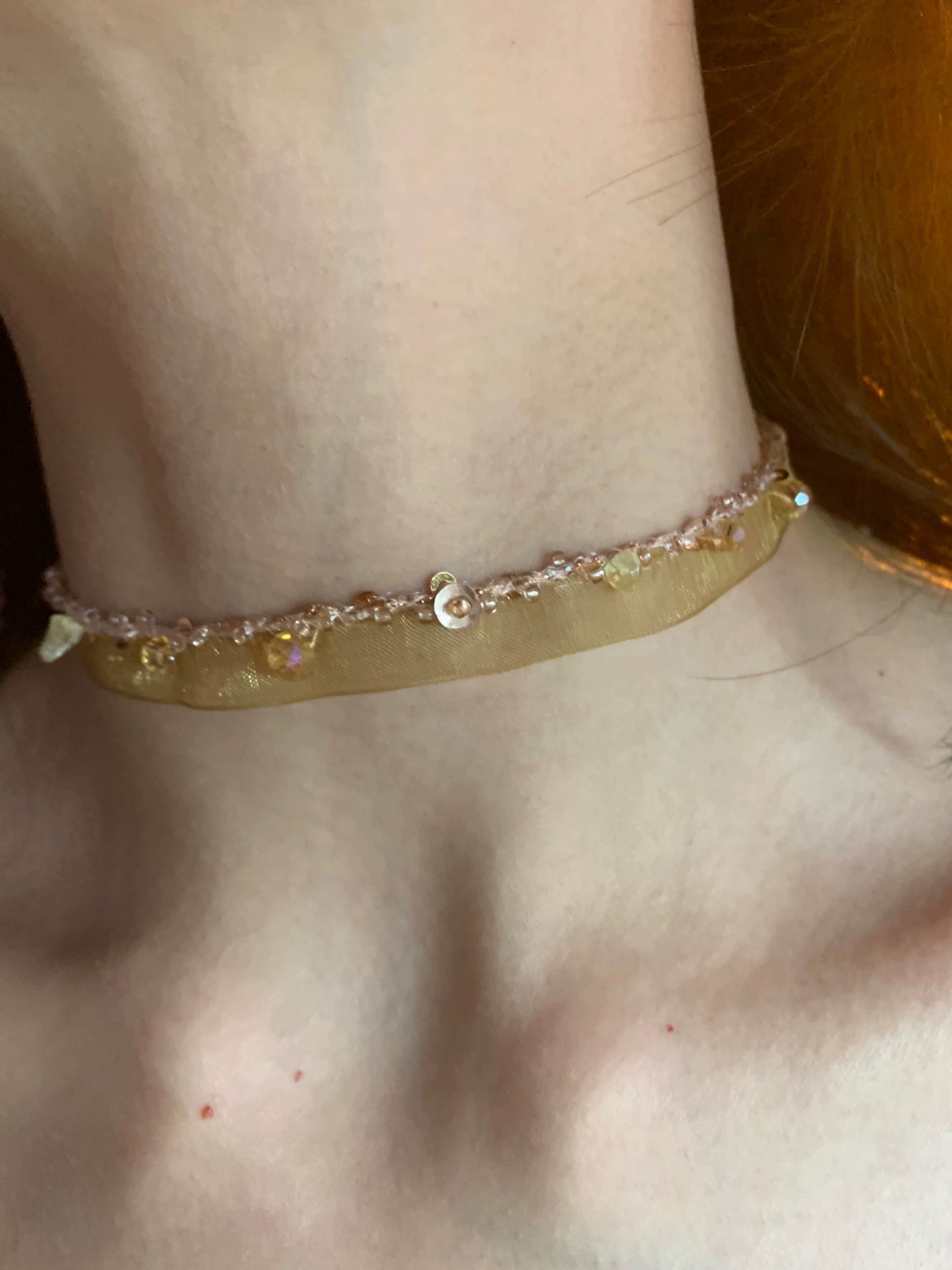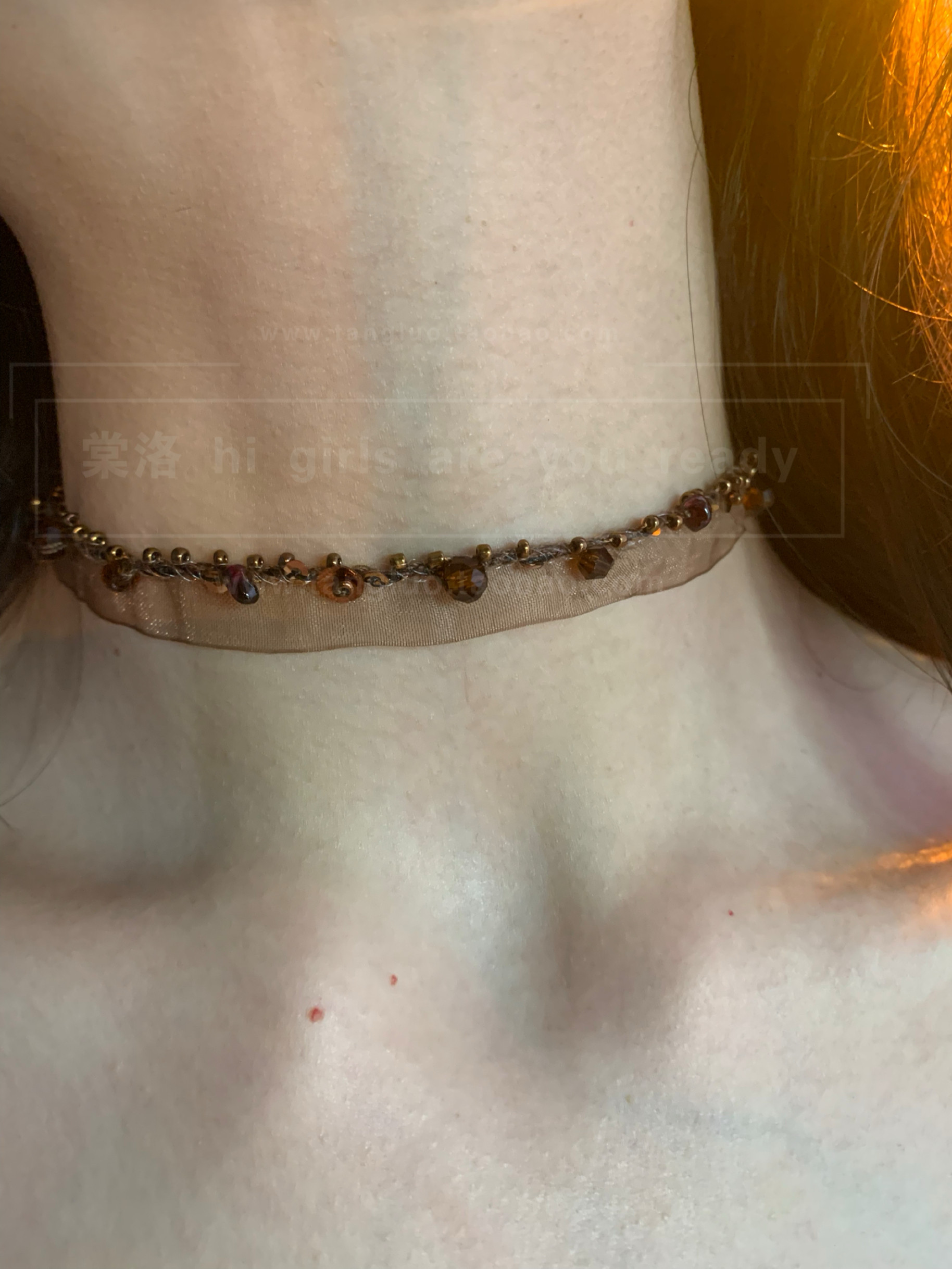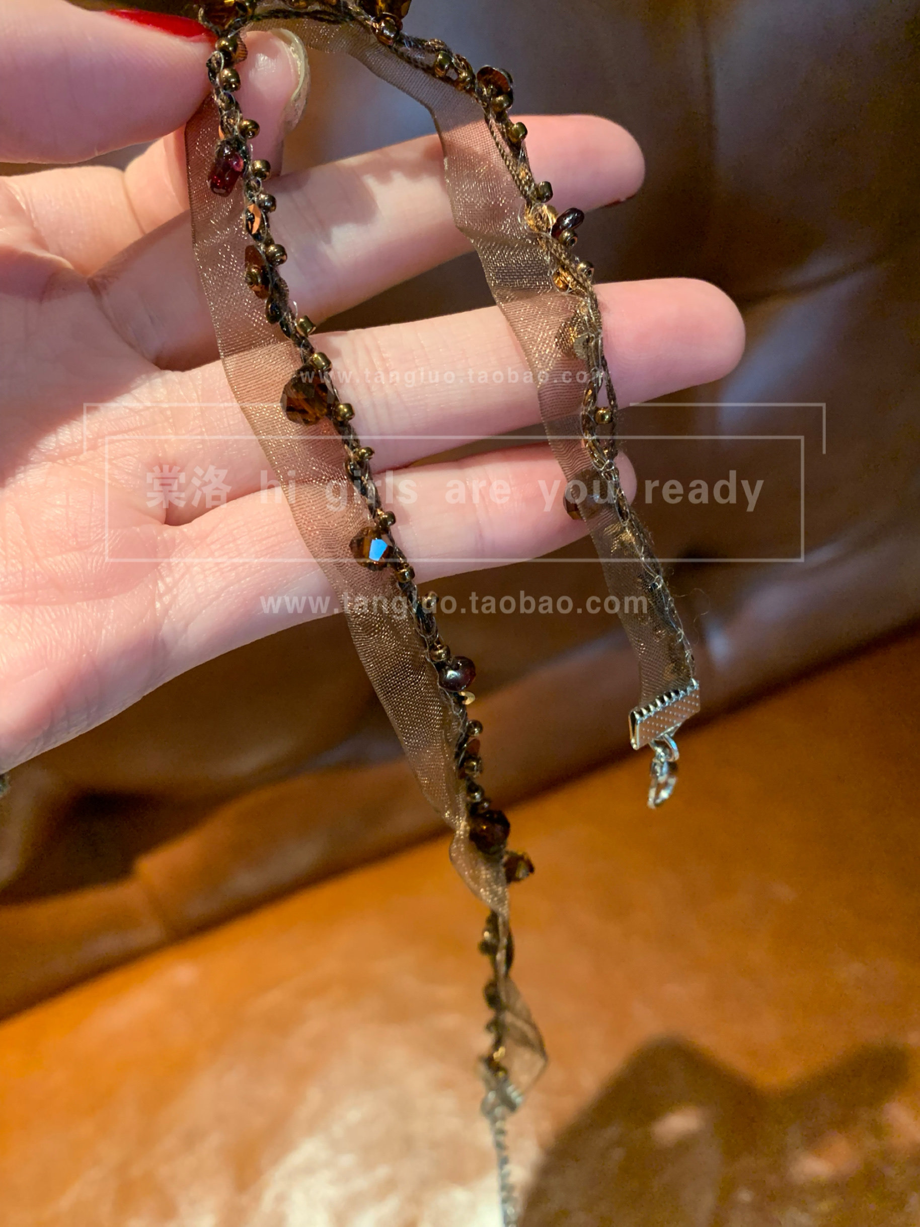 咖色钉珠choker项圈女蕾丝布艺颈链高级感个性独特百搭锁骨链2026