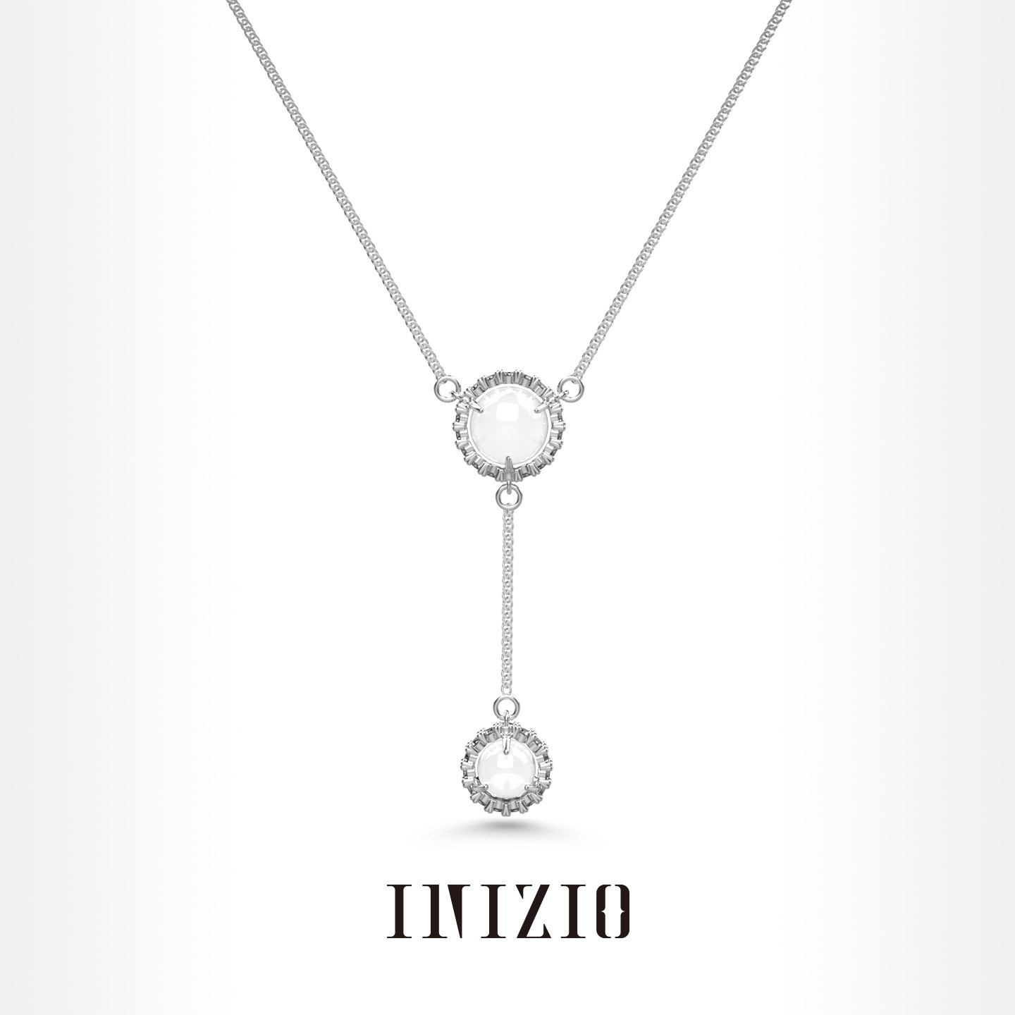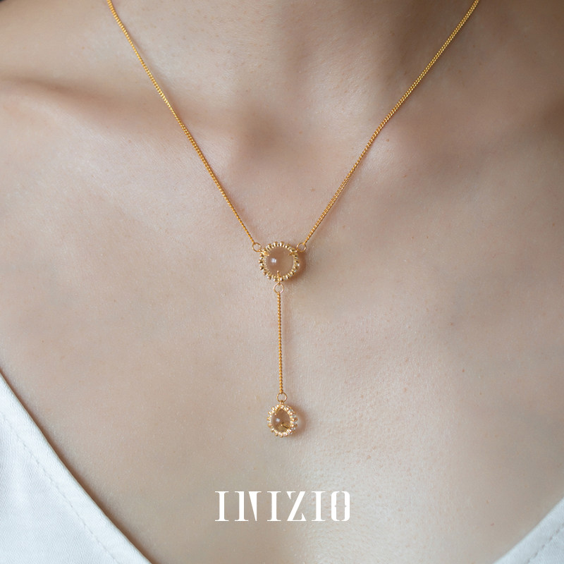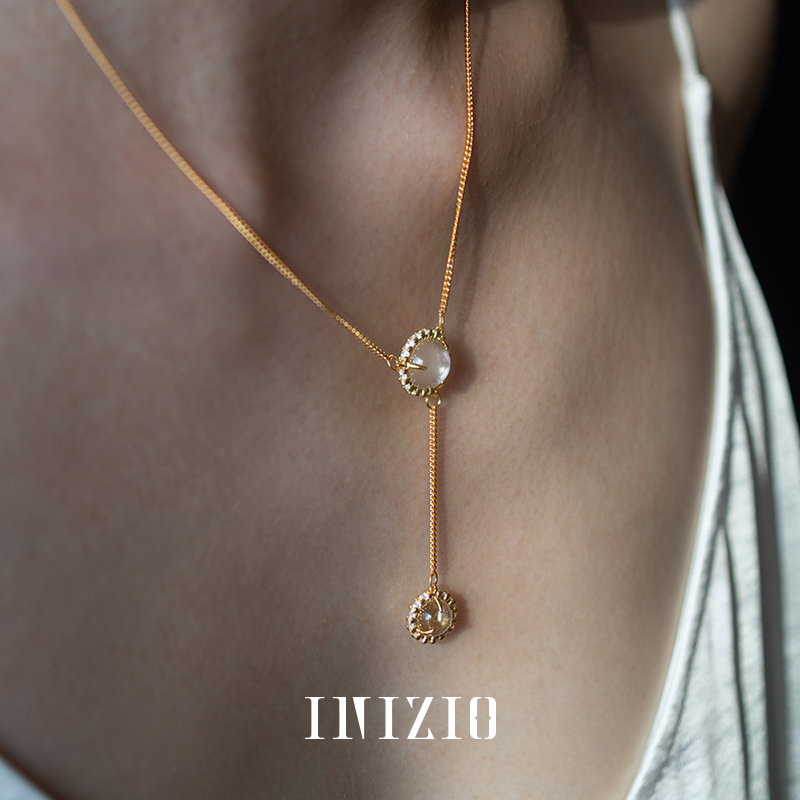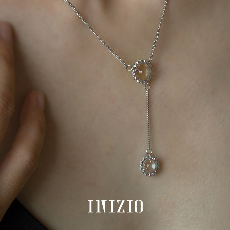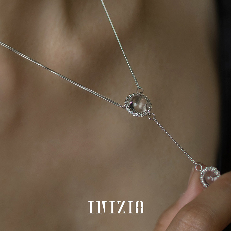 INIZIO 灵光双珠项链 S925纯银白水晶原创设计小众高级感锁骨链