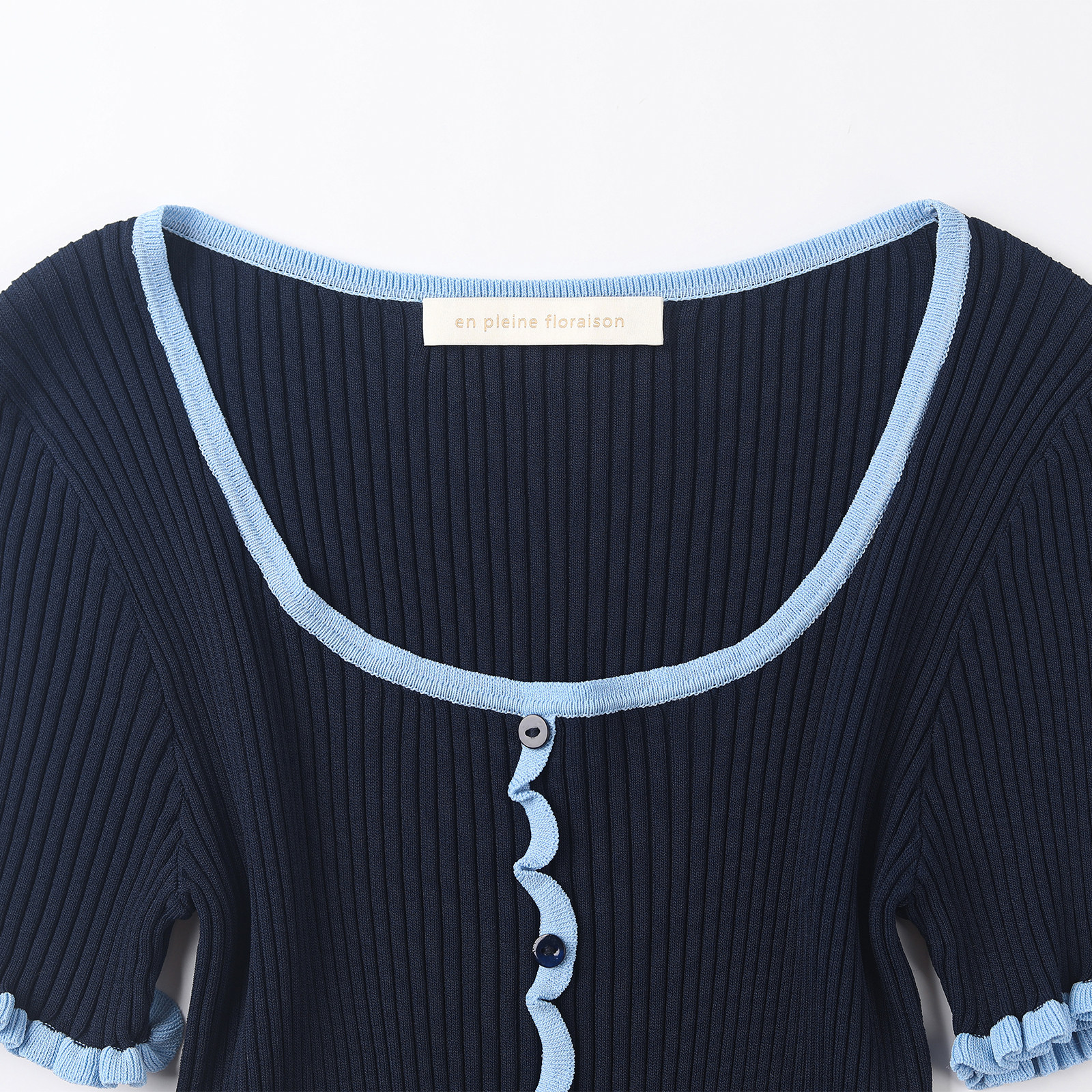 wana try木耳边夏季凉感针织衫2026夏季新款修身简约百搭女款上衣