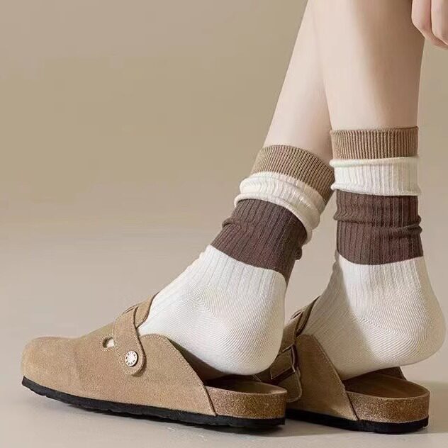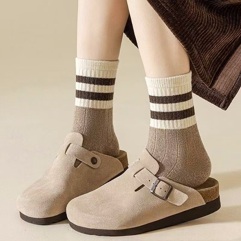 袜子女中筒春秋新款日系美德拉复古条纹ins百搭防臭学生长袜