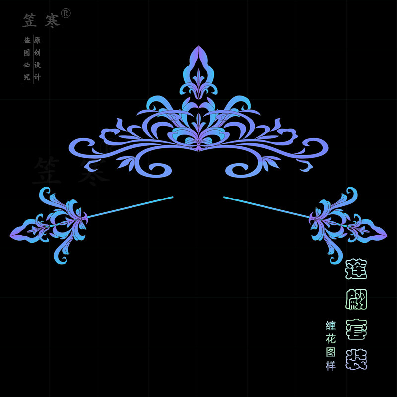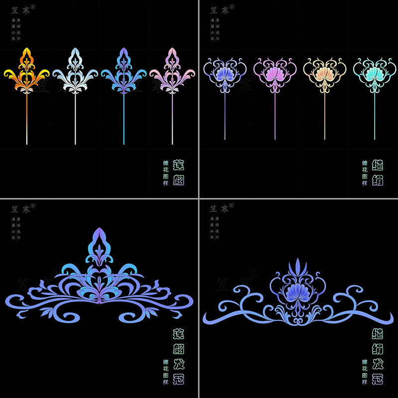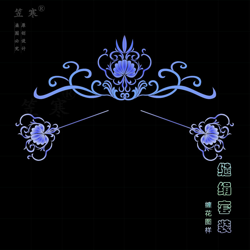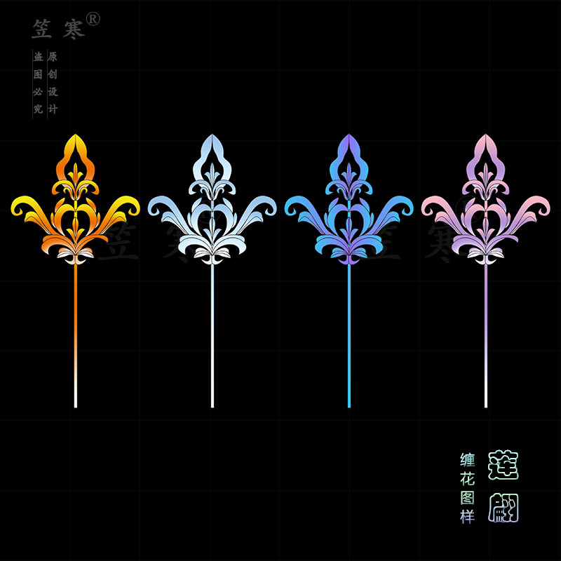 莲翩缱绢发簪发钗发冠缠花图样缠花纸模缠花图纸材料配件