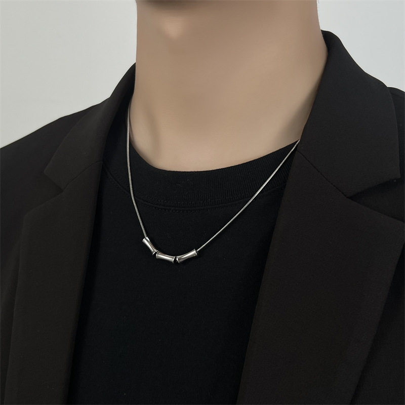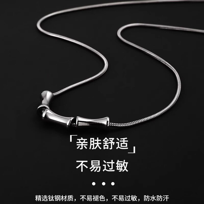 竹节小蛮腰钛钢吊坠项链男生小众高级感情侣简约配饰冷淡风毛衣链