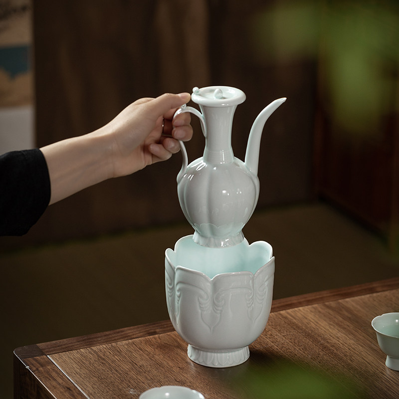 景德镇影青陶瓷仿宋代点茶壶执壶小号温酒壶汤酒复古中式茶壶茶具
