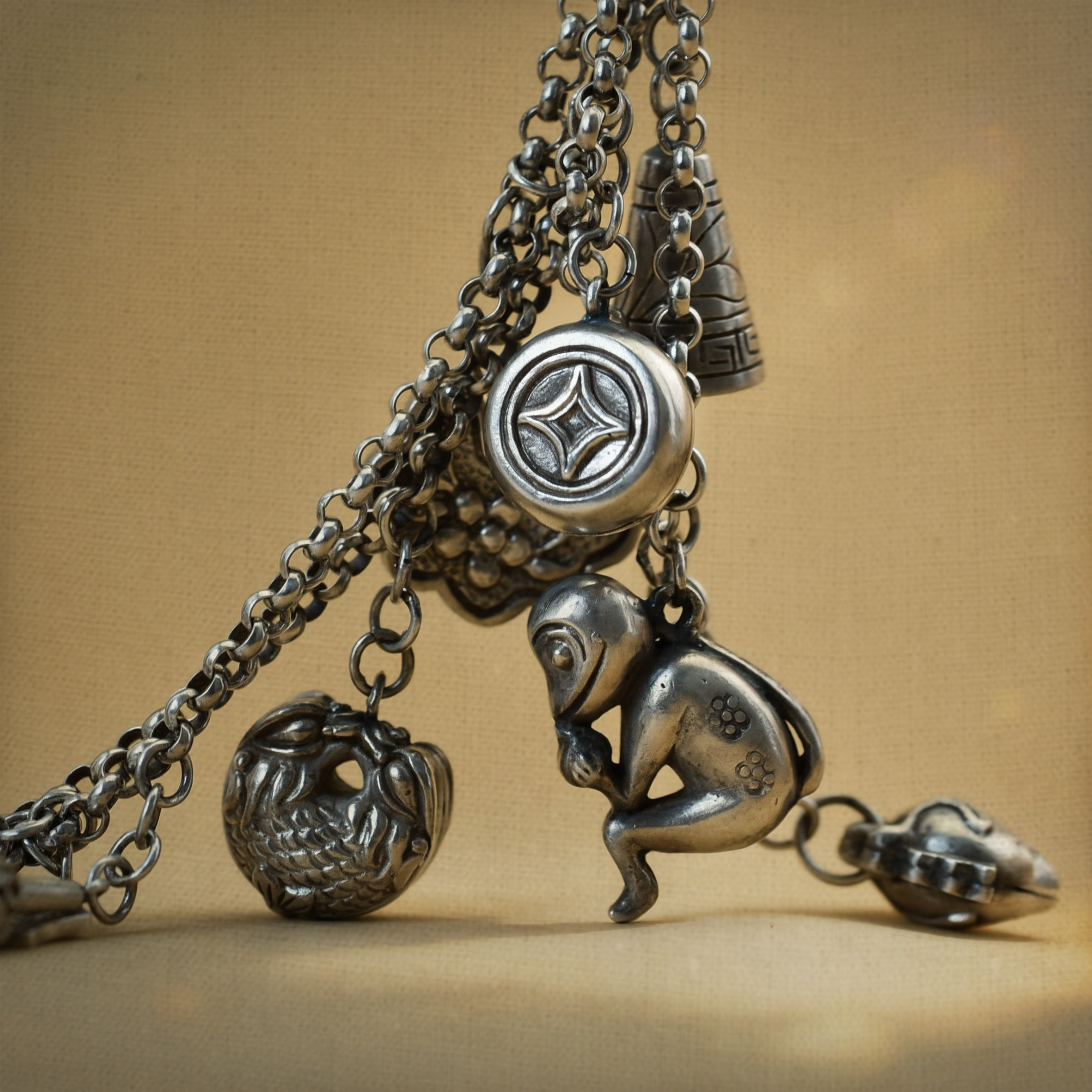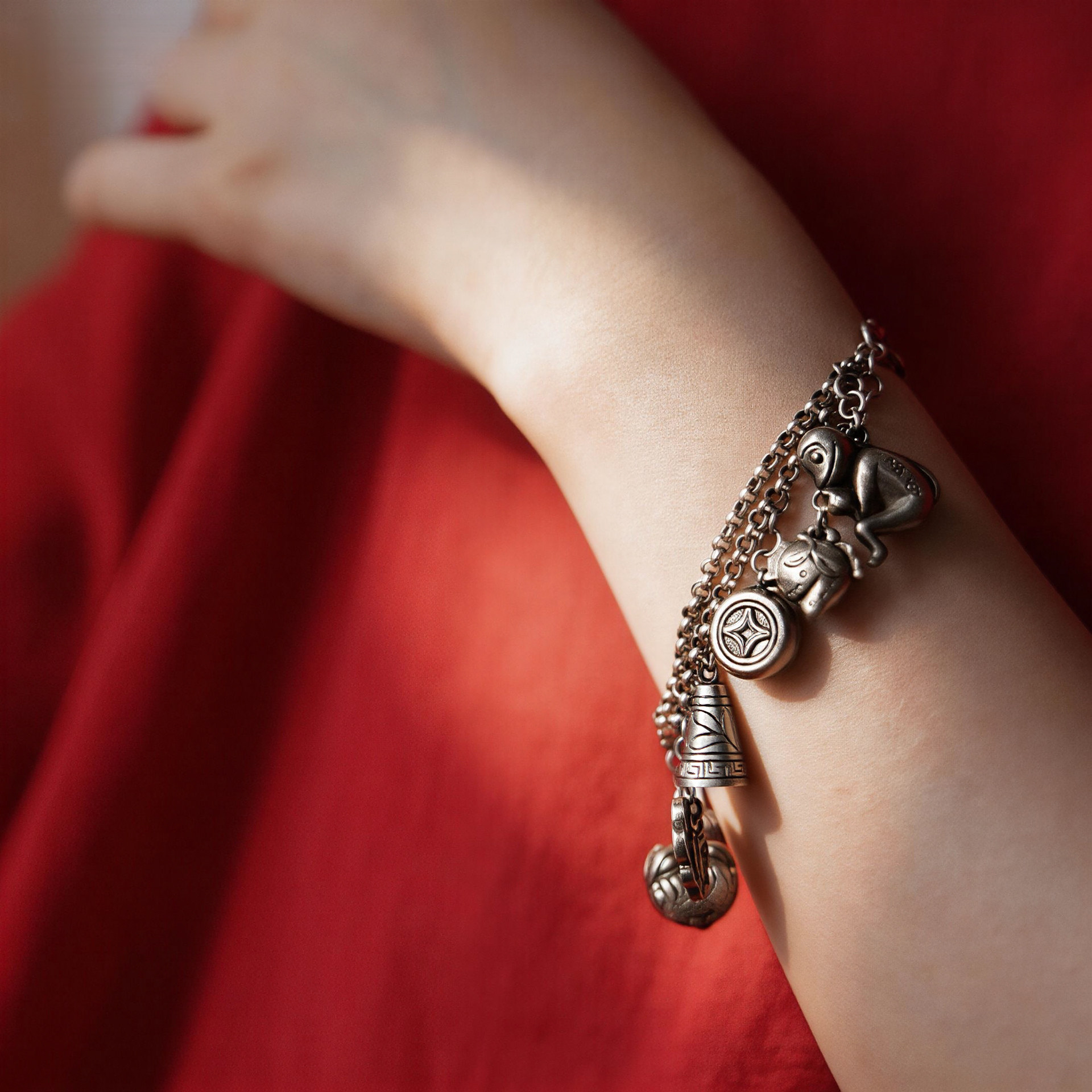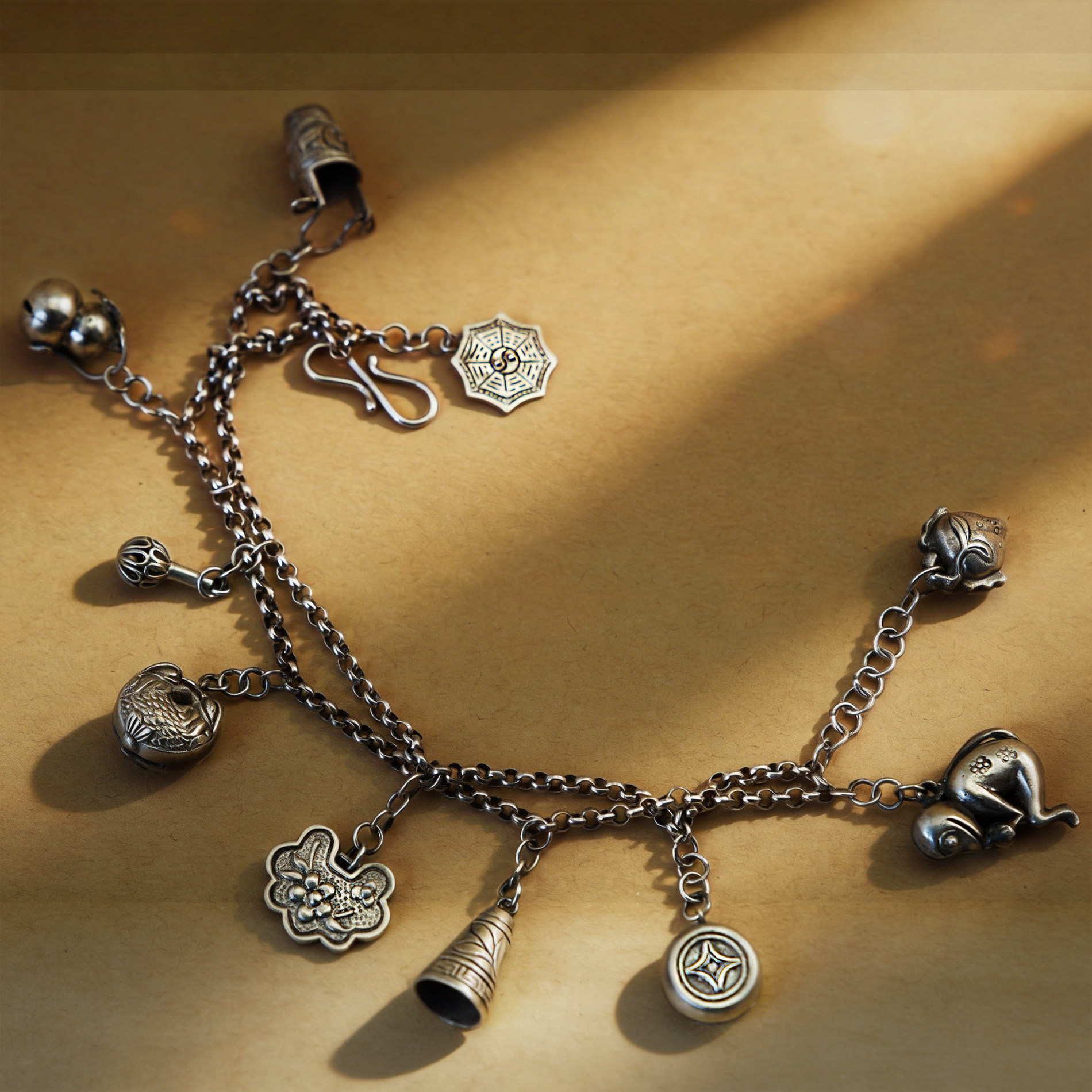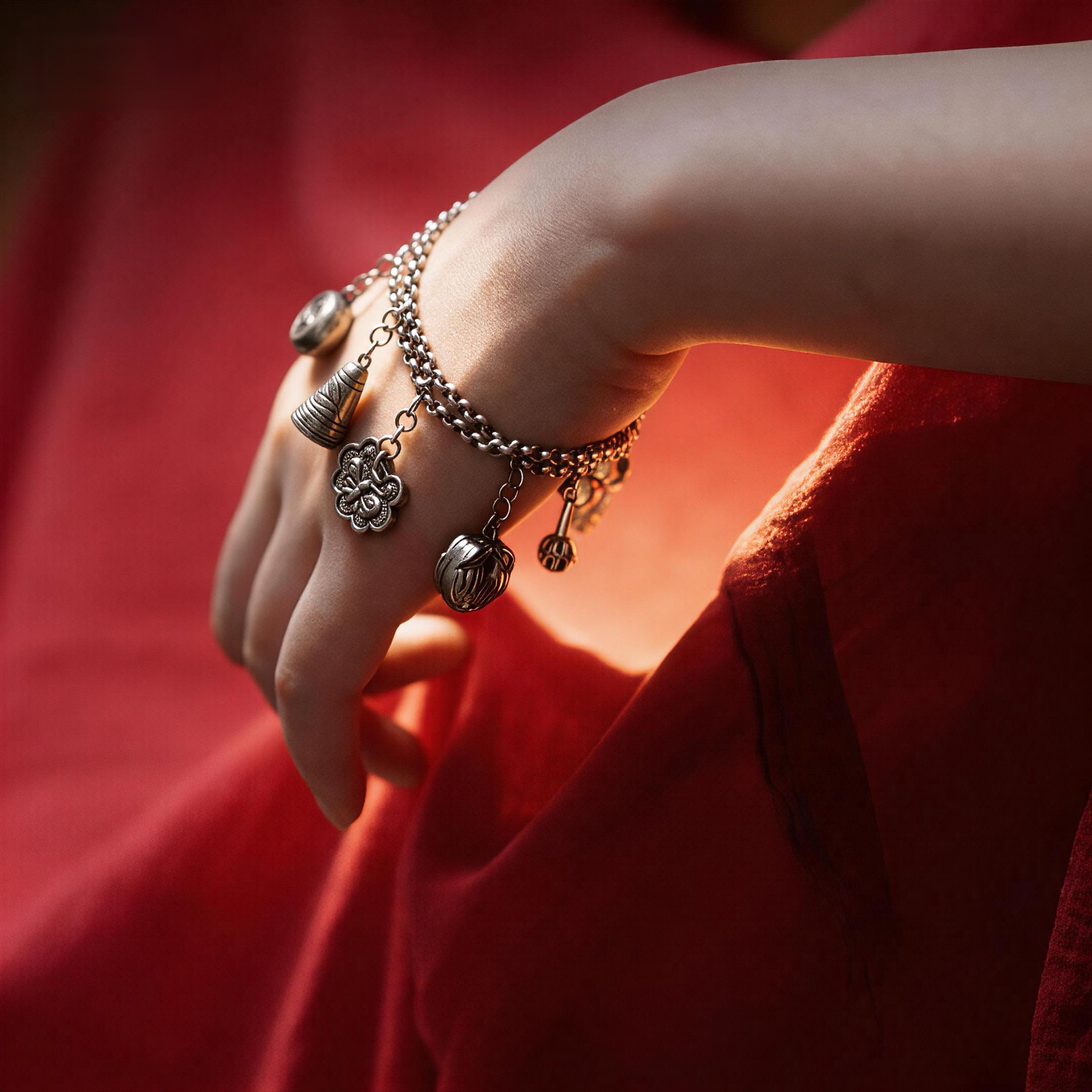 《银铃荟萃》九九倾城/吉祥纯银手链/满寓意银手链/古法手工银饰